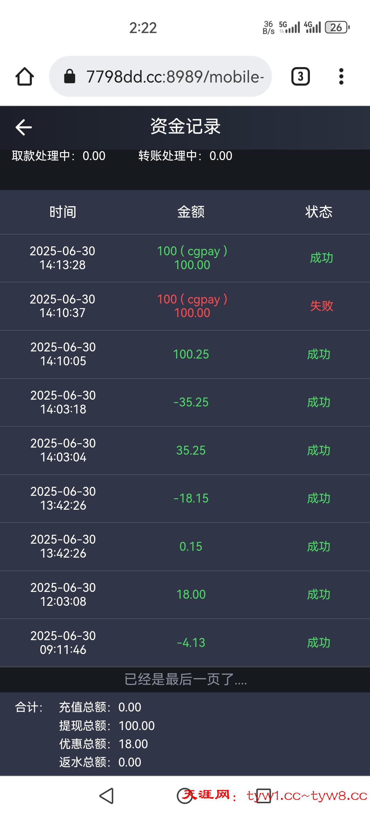出款情况:自测