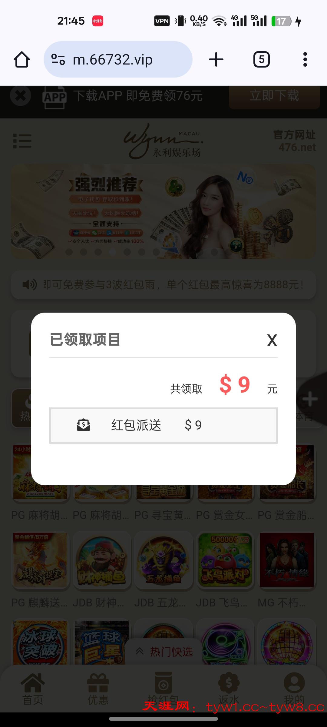 链接476.net,老用户有号的上线看看,我刚刚收到电话上线领的9