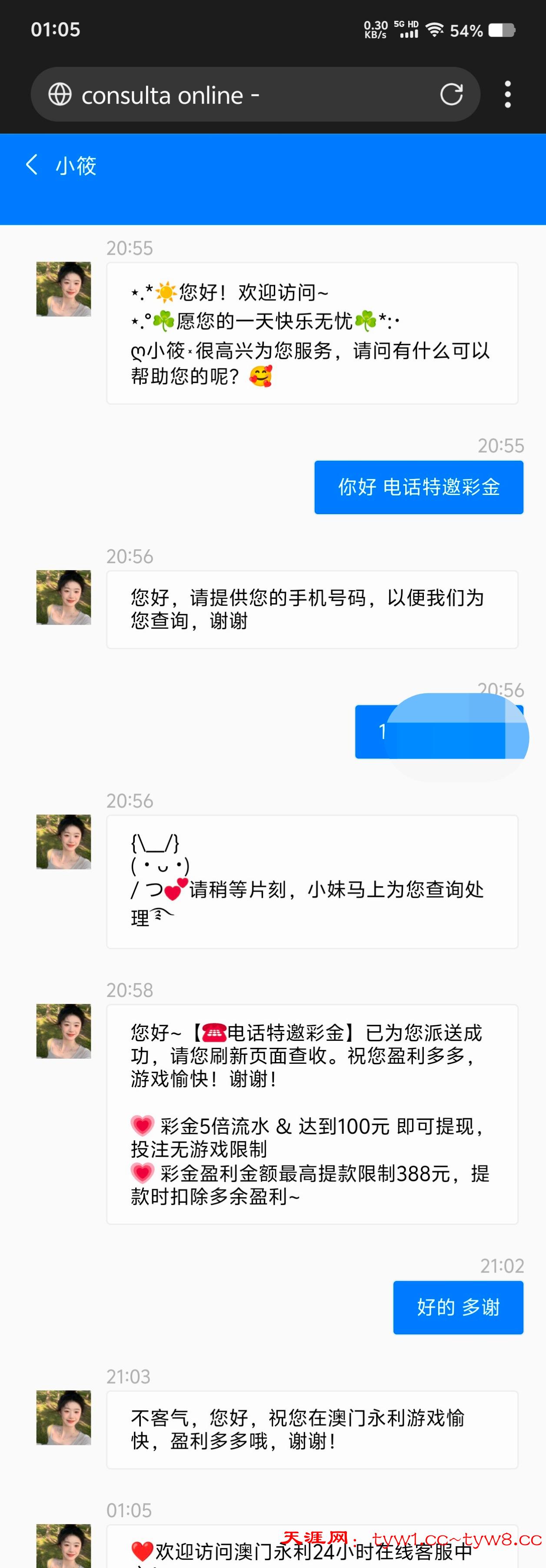 之前送过 这次电话回访找在线客服碰瓷电话特邀38 不限制游戏 5倍水 最高出款388 我最多打上200 提了100 剩下100输了 😂