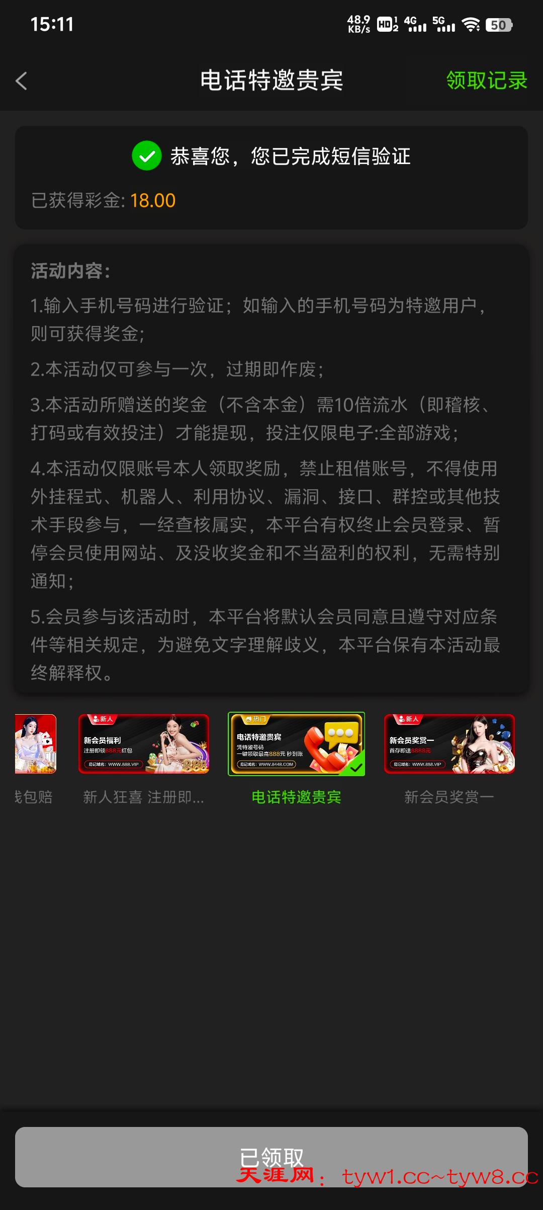 我两个号都领到了 最低10就可以出款 秒到 电话