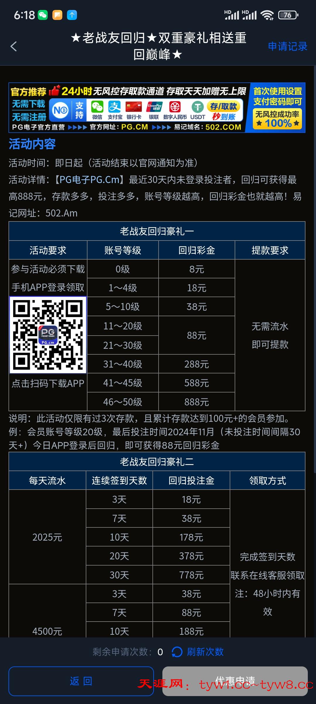 【PG电子502】回归彩金