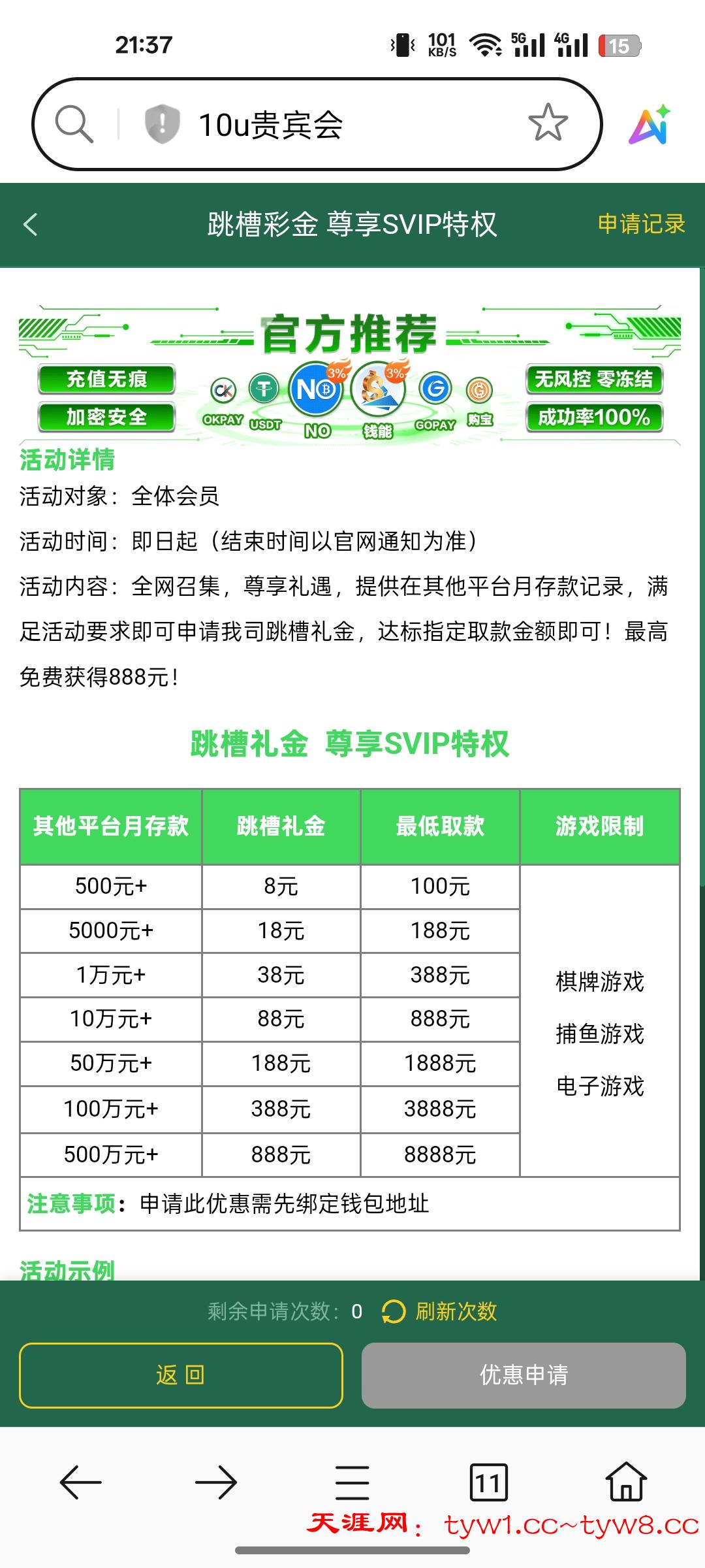 新用户注册申请跳槽金,提供有充值记录的平台领取,我是上个月的充值记录,领到了38,半小时左右审核