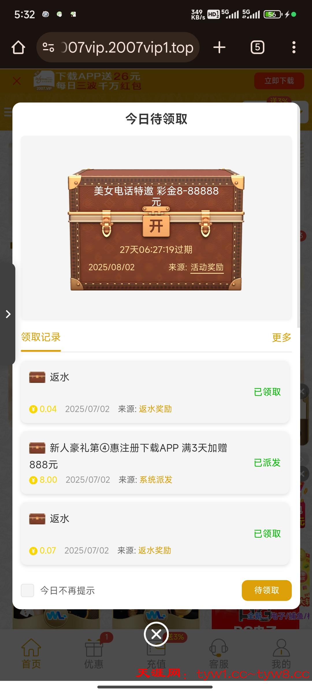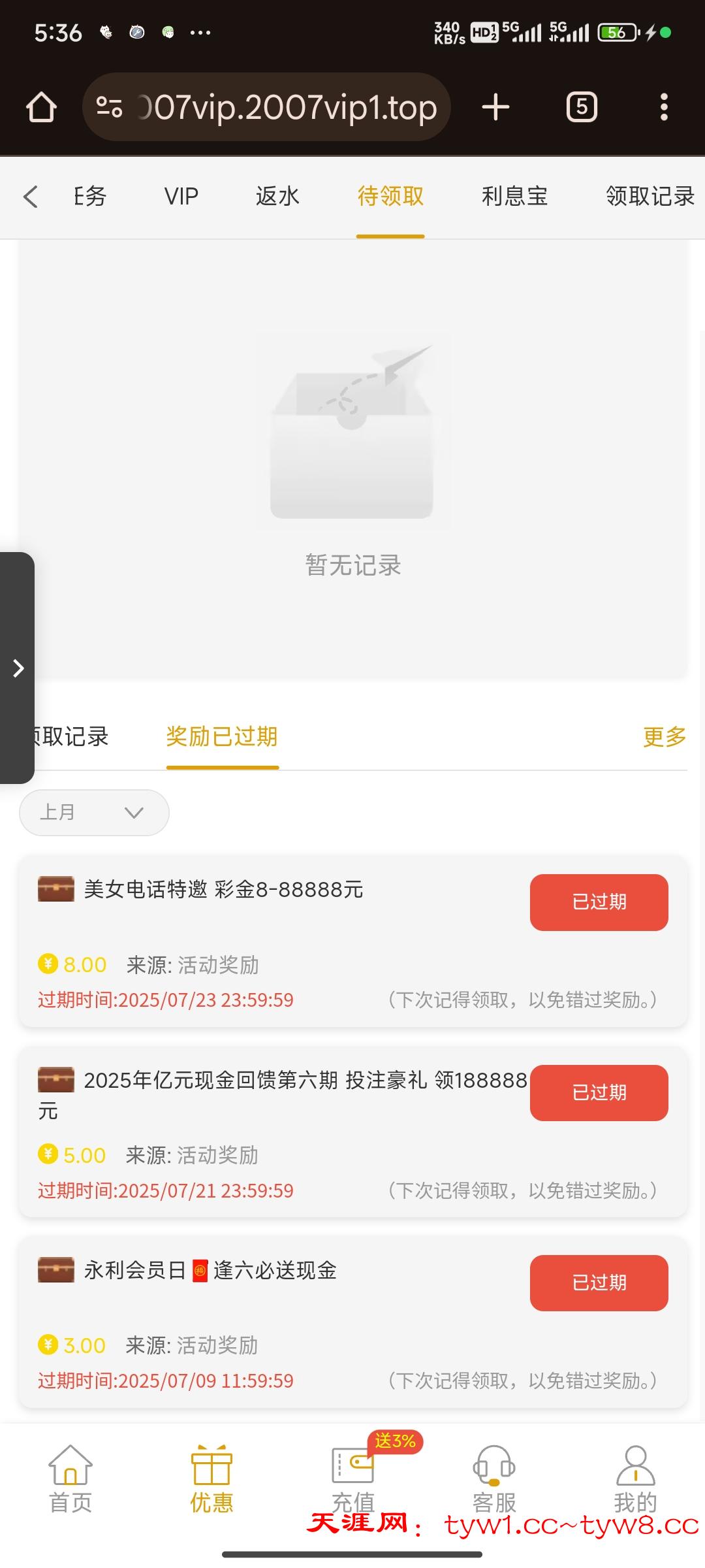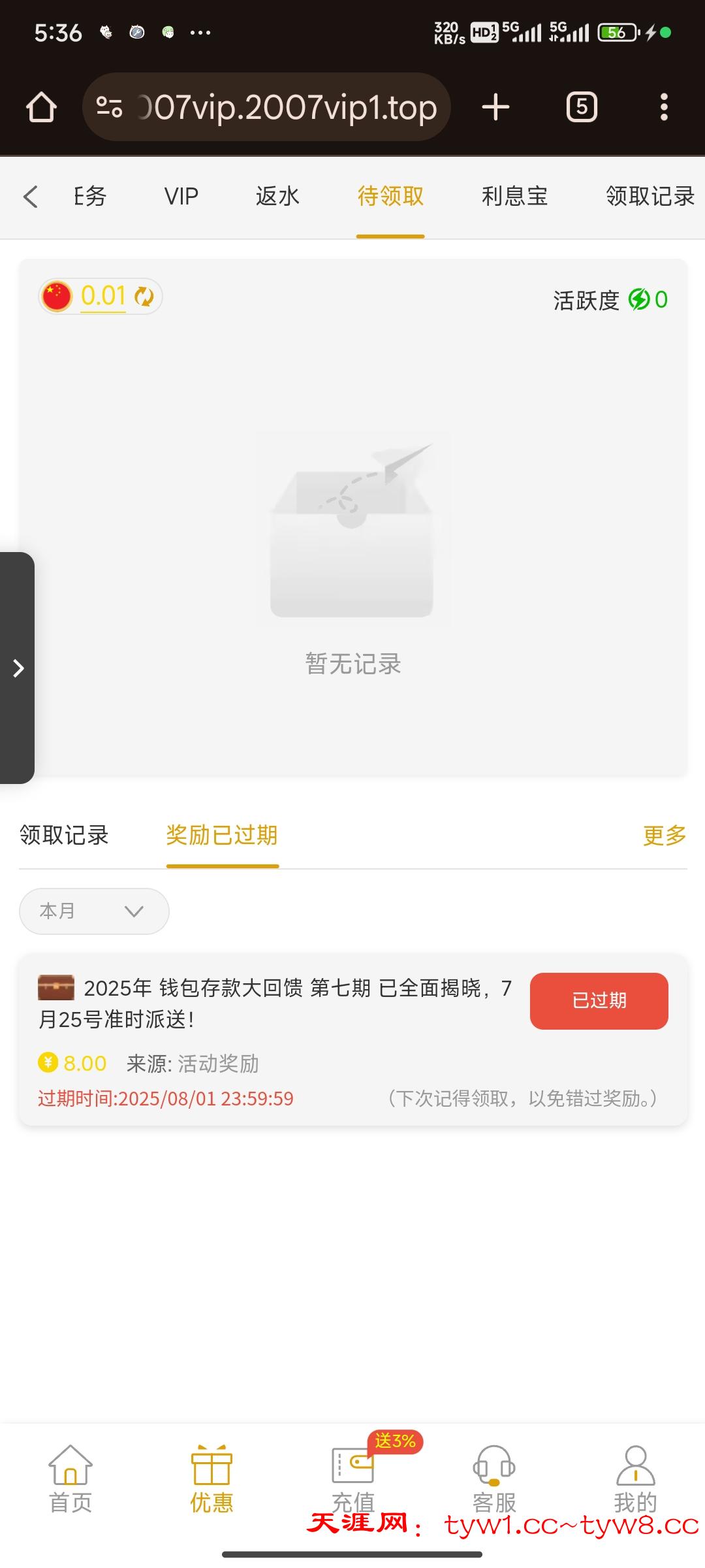 有号的兄弟上去看看有没有回访,自动送的,不是手动,刚刚上去一看,好几个彩金没领过期了,唉