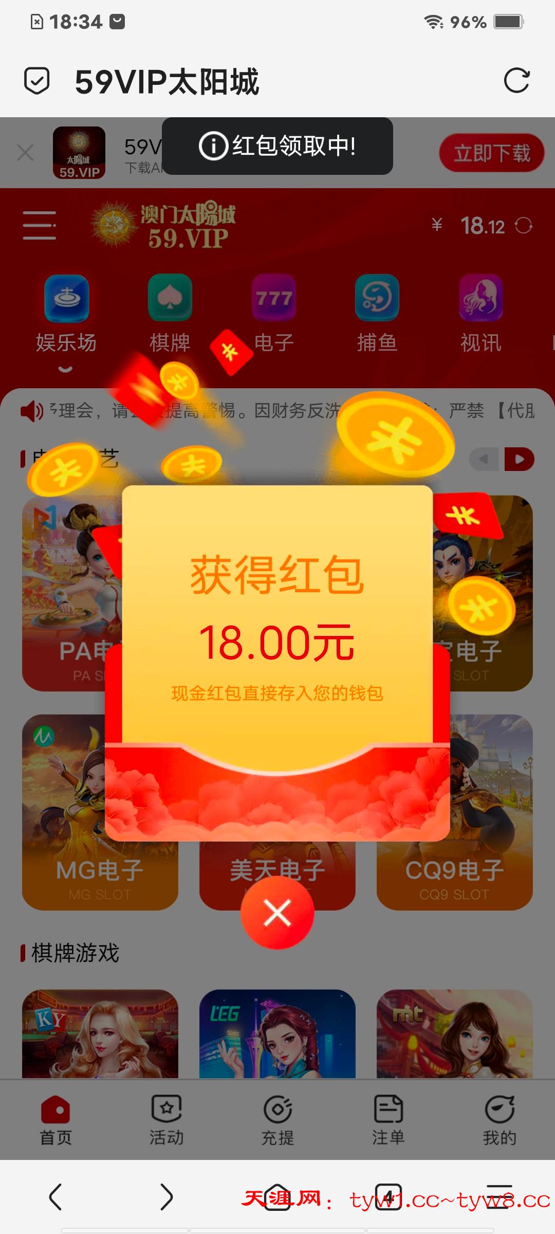 今天登录还有18  昨天提款的又送18