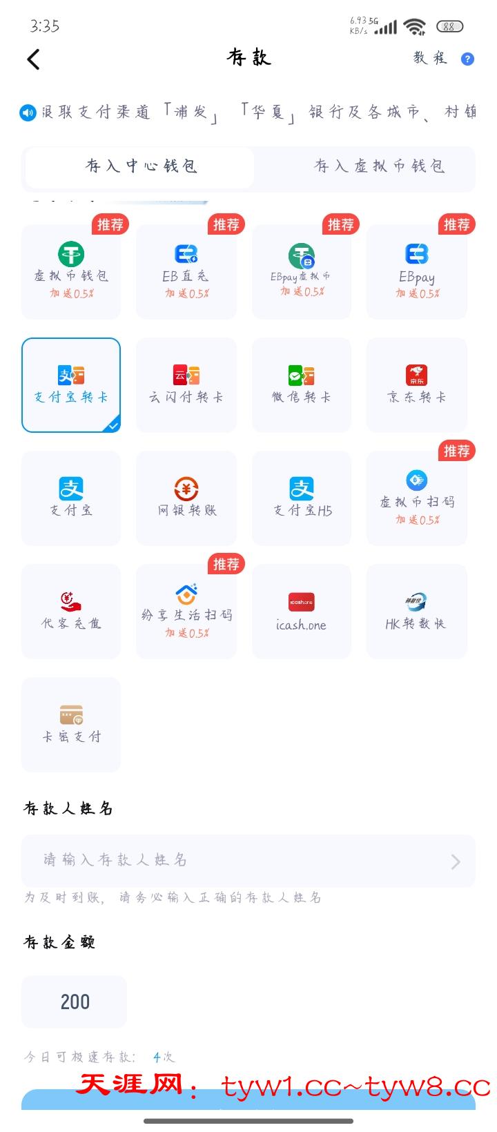 绑定完信息,然后点存款转卡支付宝随便上传一张图片几分钟就到账,有200是锁定的