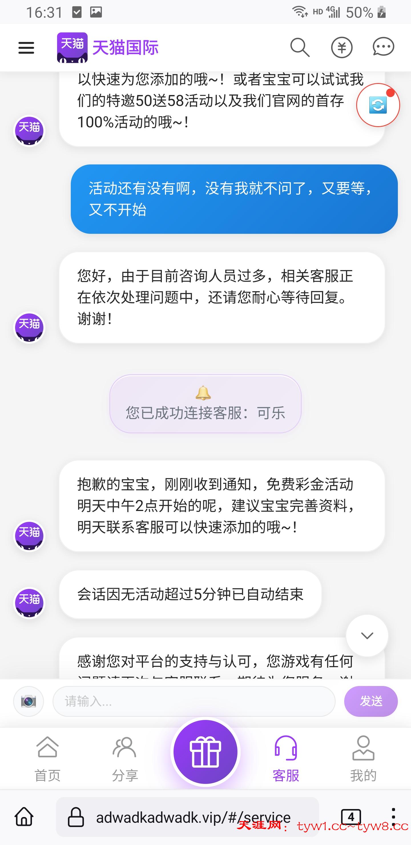 亲,接到活动专员通知,今天的体验金已经派发完毕,客服建议您参加限时存50送58,或者新人首存送100%。
