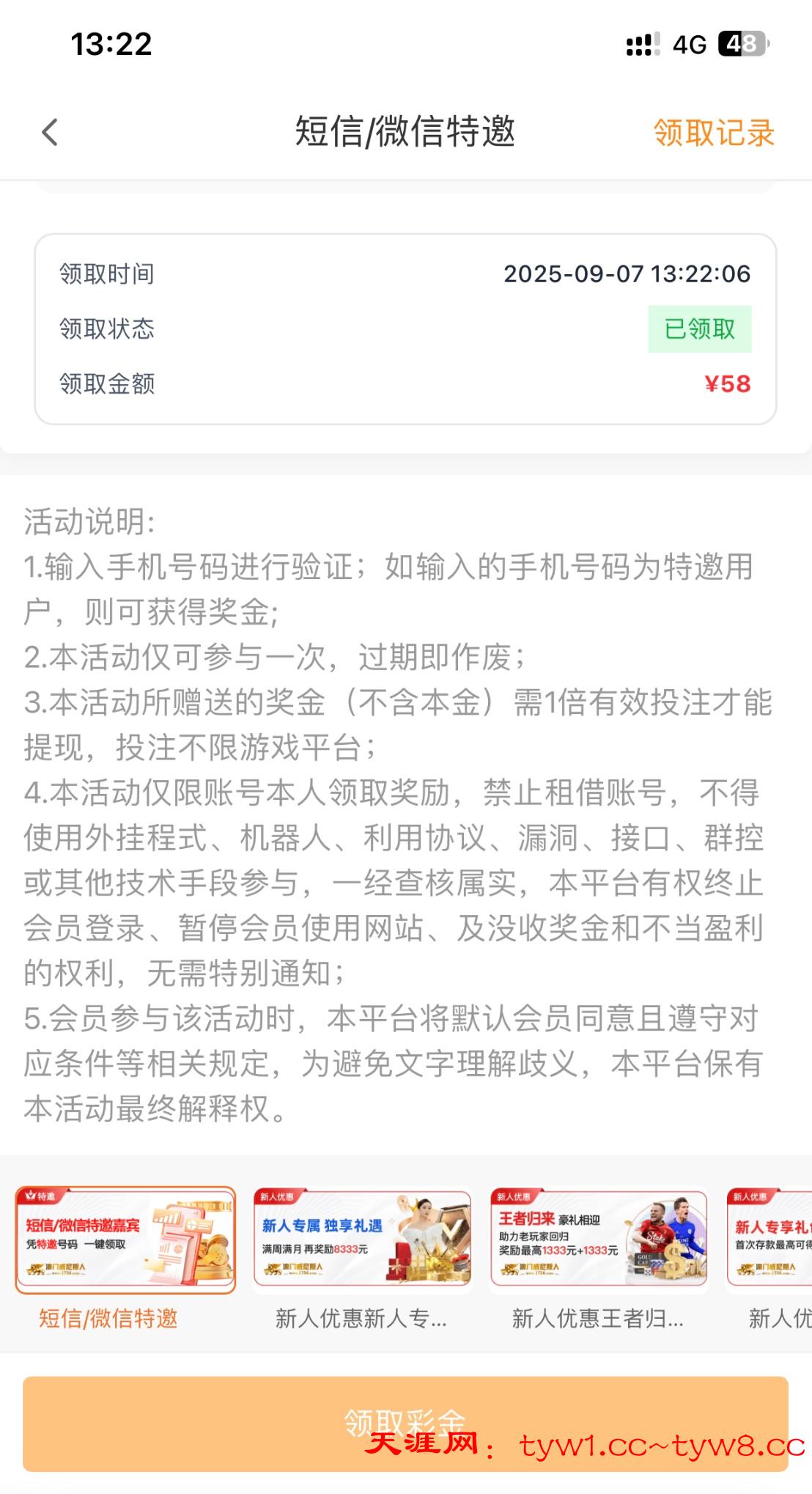 注册下载app特邀碰瓷活动区自助申请,不送过段时间在看;老玩家回归,历史充值过满100+,最近7天无充值记录,可以申请以小博大,具体规则看介绍,有兴趣去看看。