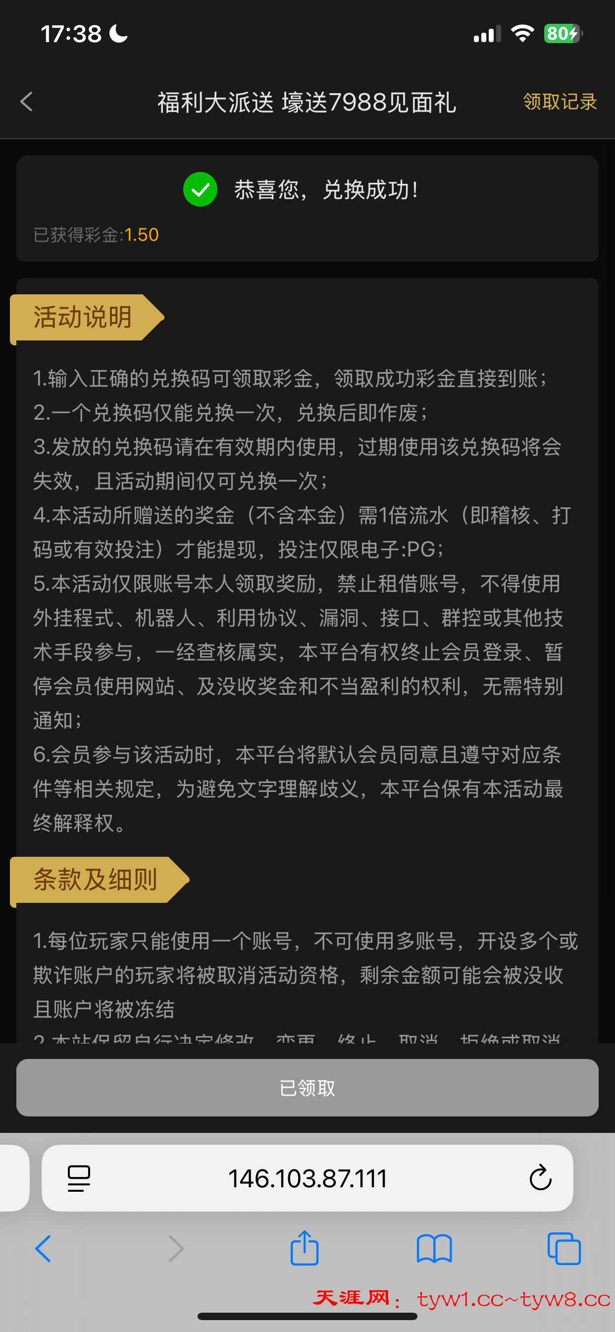 兑换码vip1 vip2 说着给8-188其实就1块多赌神上,兑换不了就是黄了,勿充值,同实名只能领一次 www.7988.com