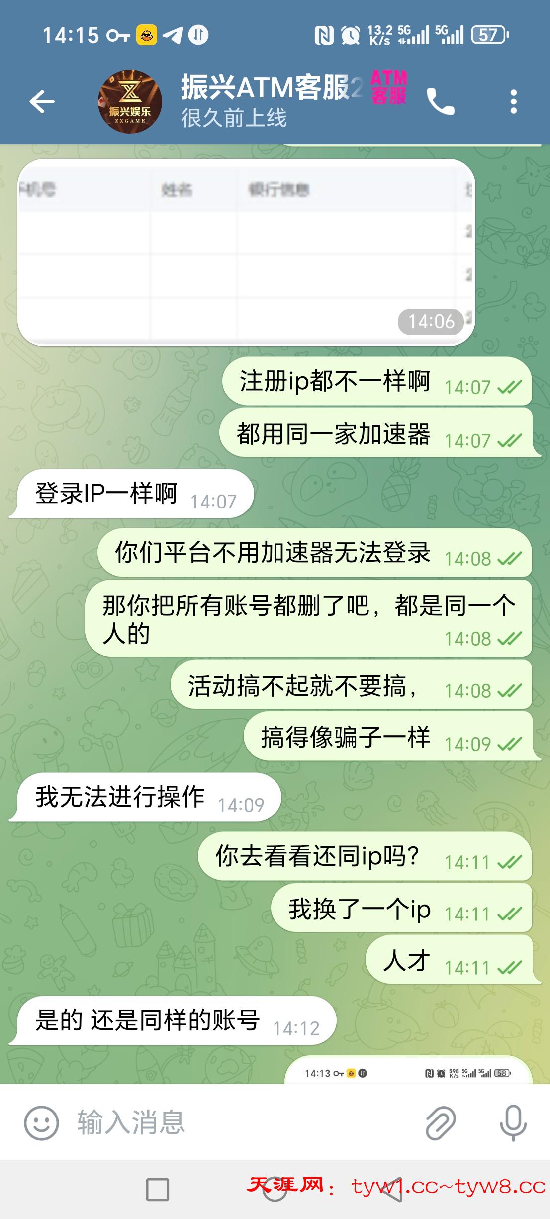 飞机振兴Atm现在狗庄连ip都改看到有说振兴atm飞机抢红包的,中奖了就说我多ip给我截图,我换了个ip,跟我说还是多ip,结果被我实锤,连ip都改,这种狗庄绝对是黑网提不出来的,现在狗庄真行,把你的ip改成和别人一样的,注册ip全部不一样,他把登录ip改成一样的,为了骗人进群狗庄真是费尽心思