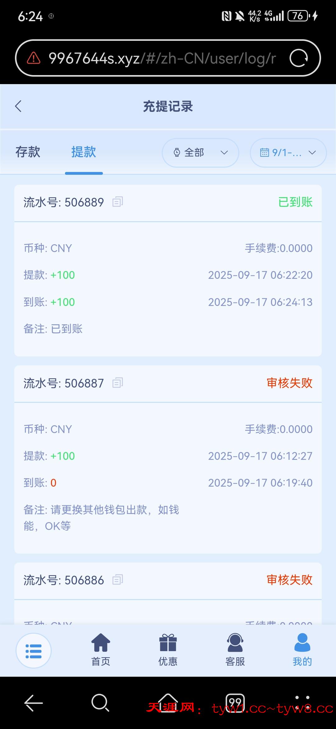 提了一百不知道能不能到账