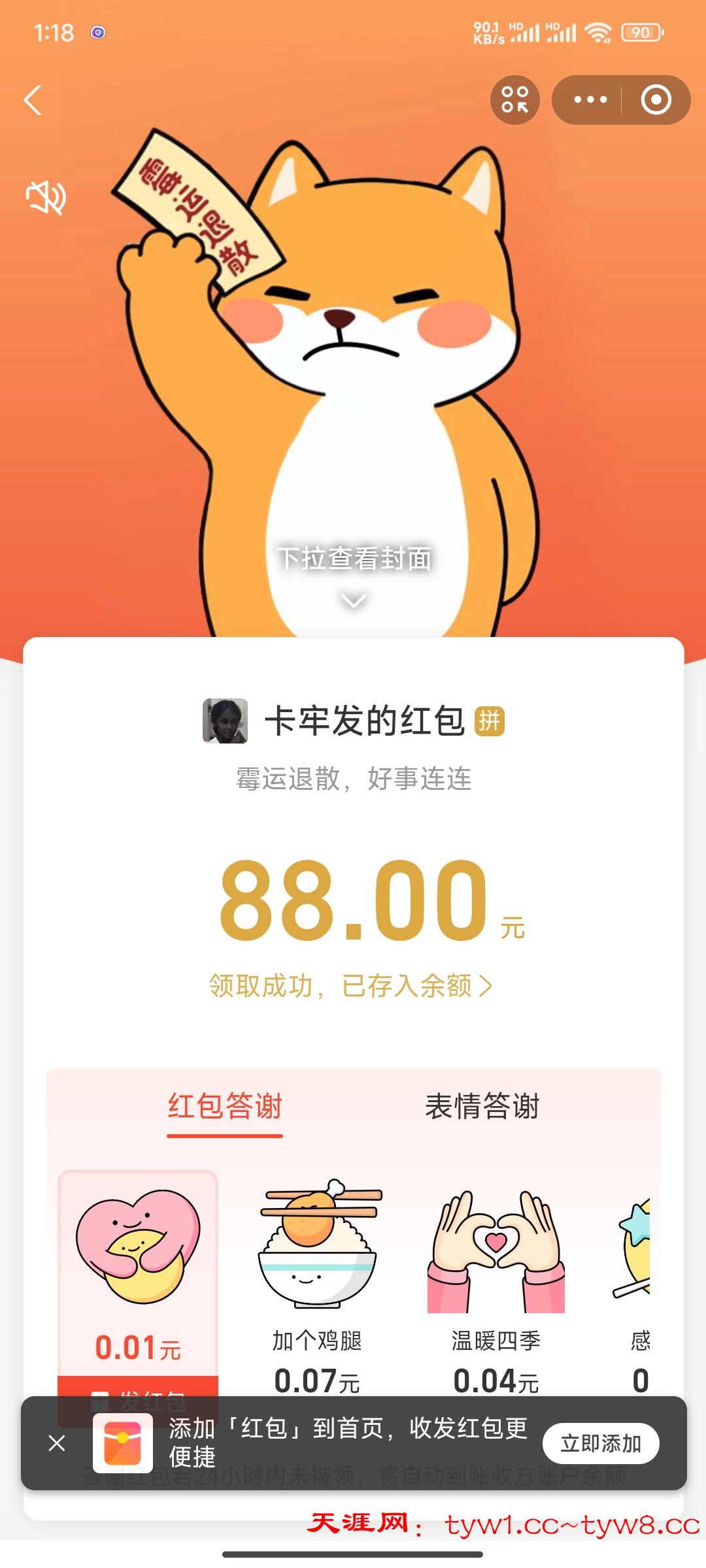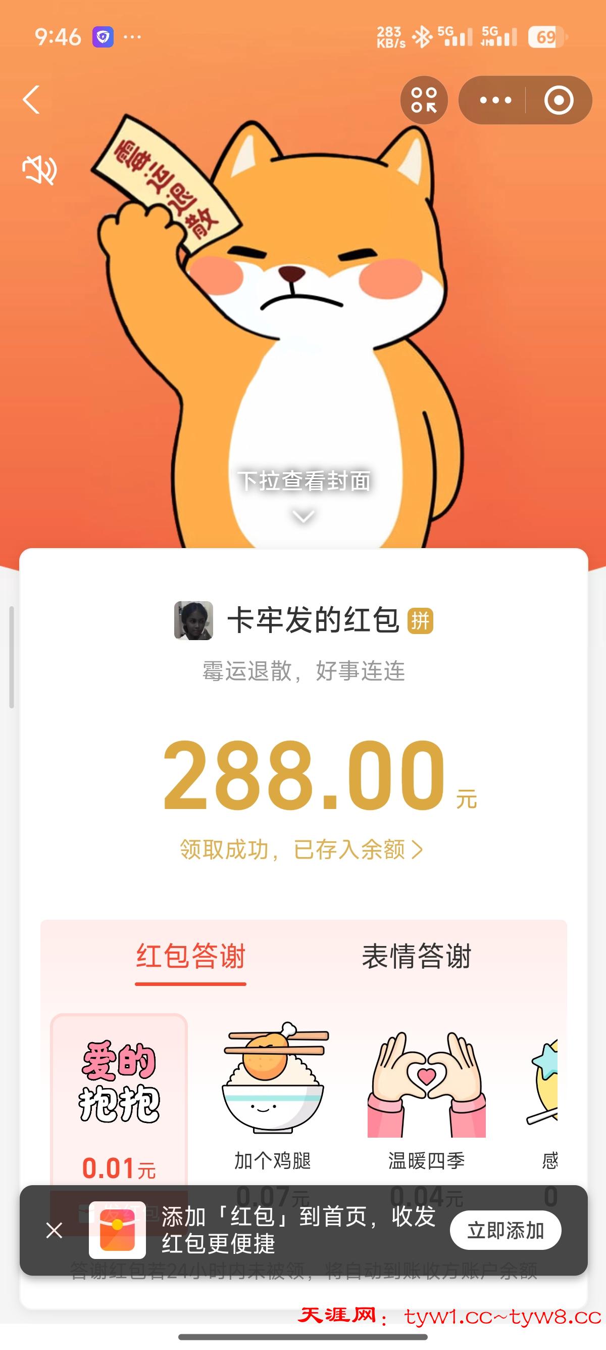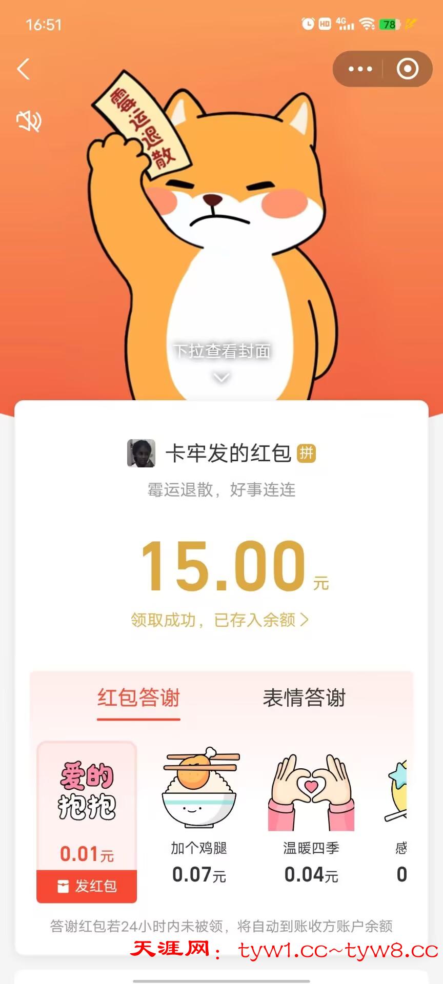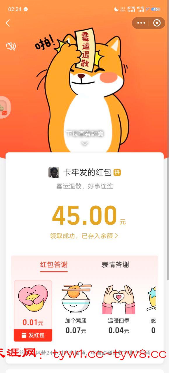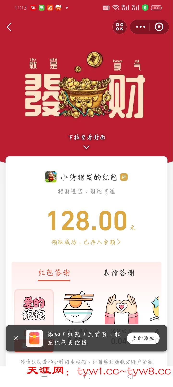华子到账,支持天涯。