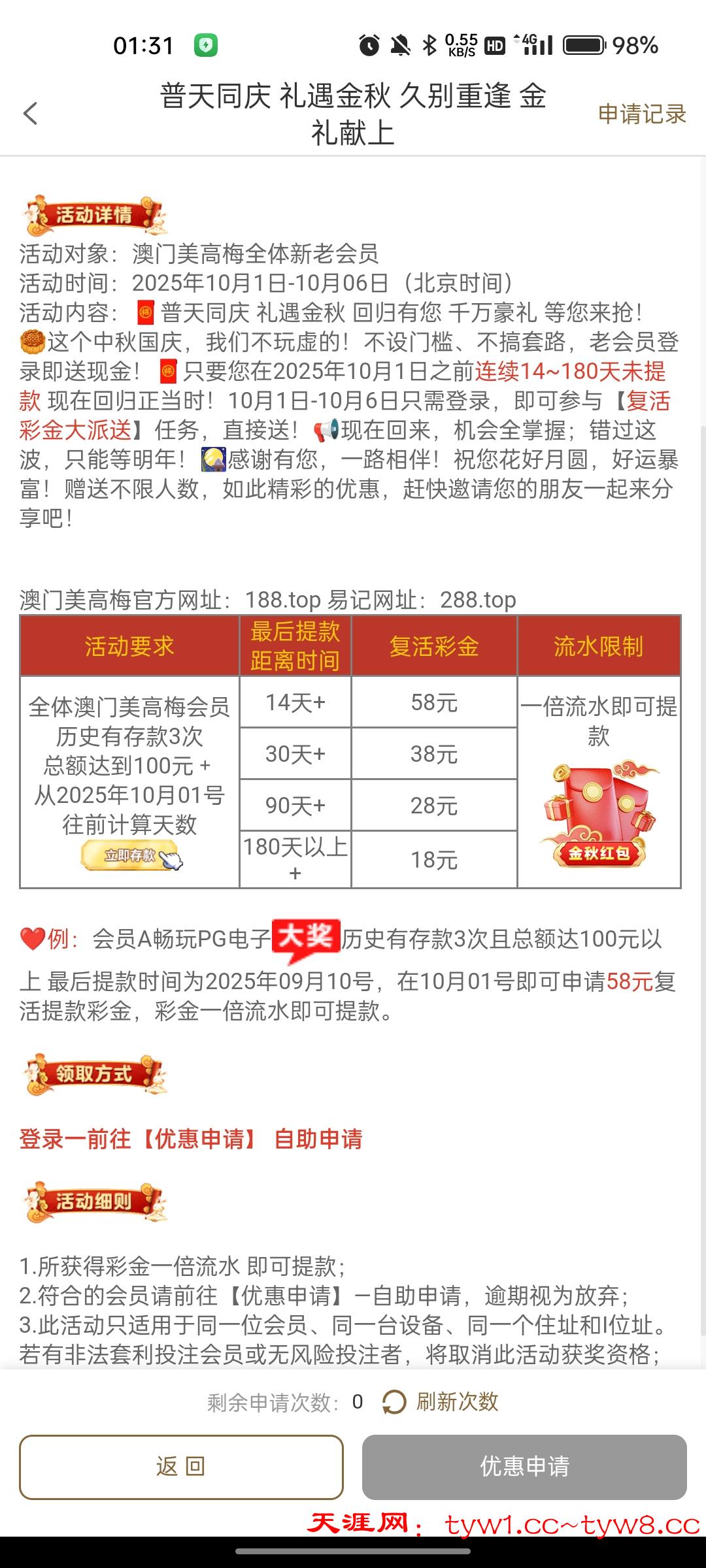 要有充值100+ 14天未提款 新人还有短信特邀活动可碰瓷 下载app有红包