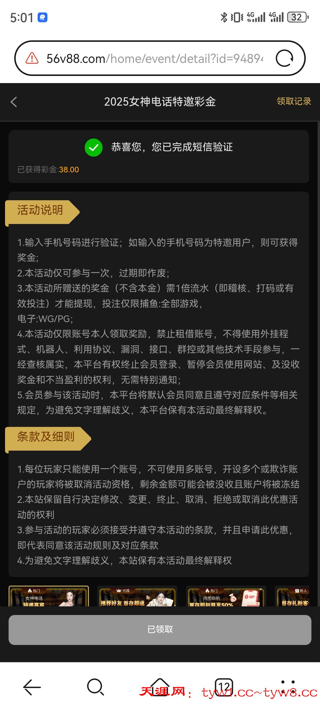 短信验证彩金