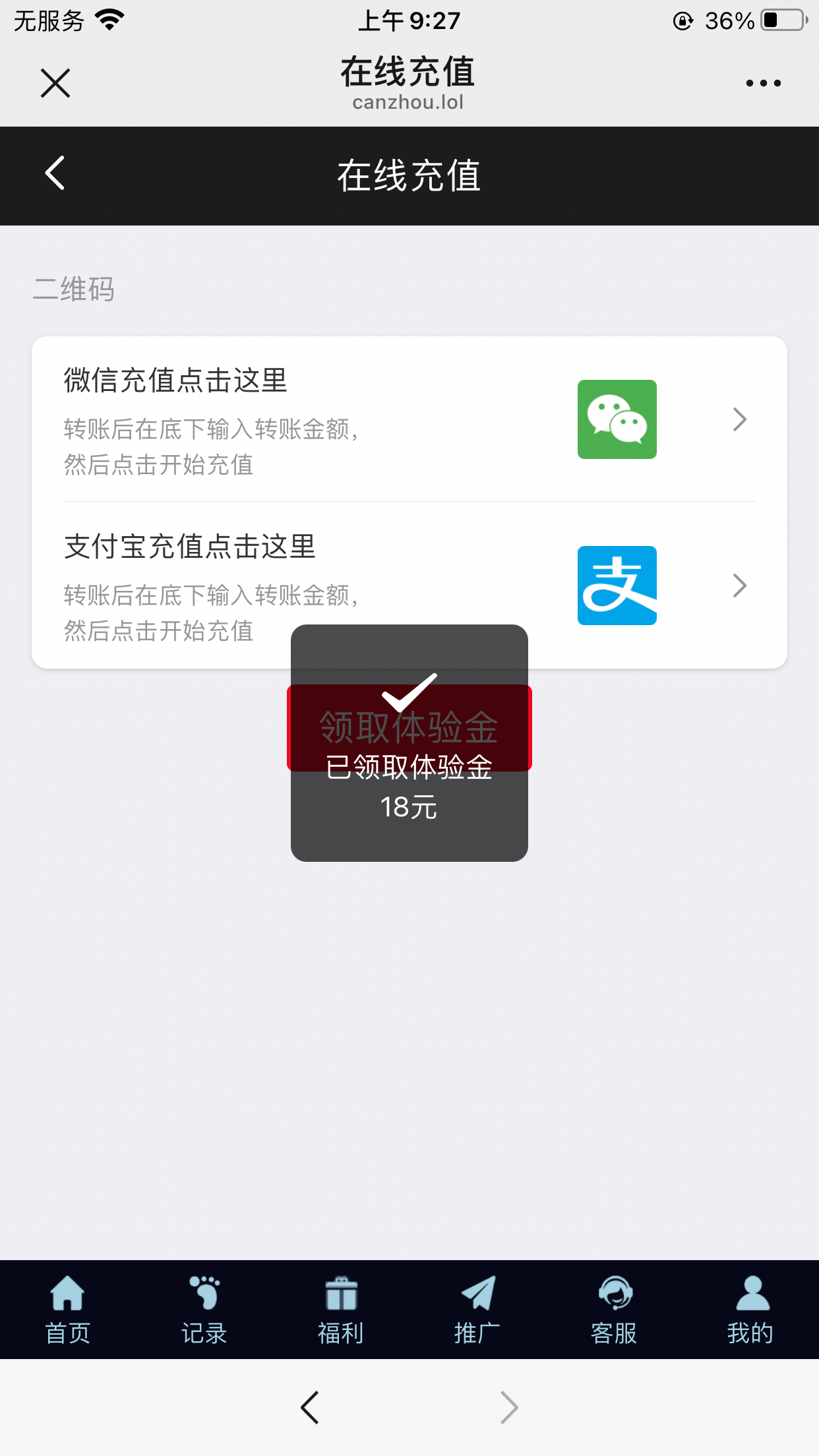 微信扫码一键登录,充值里新人体验金提交18!
