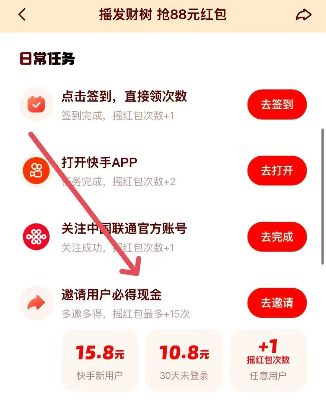 第三步, 进入活动后 点击去邀请 换号换设备操作即可 抓紧行动起来 快手极速版现在都没人用 到处都是回流老用户 随随便便拉个几十人