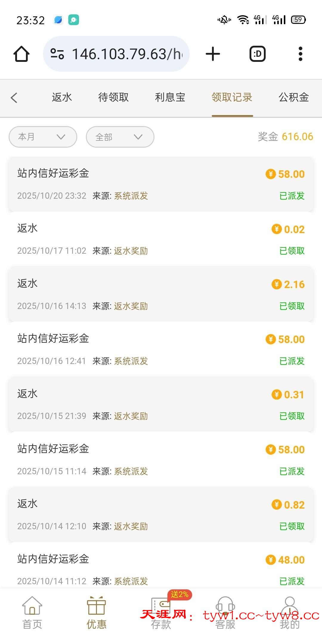 站内信又来了,这个陆续送了6-7天,不是58就是48-38 地址 777444.com