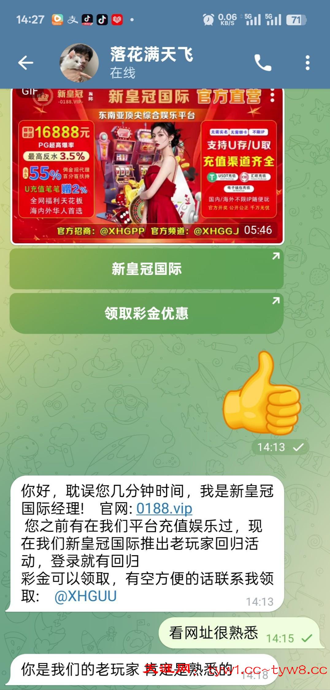 新皇冠0188.vip 在平台注册历史有过充值的老哥可联系飞机客服领取回归彩金,彩金随机,给我派送了28元彩金,飞机客服账号@XHGUU