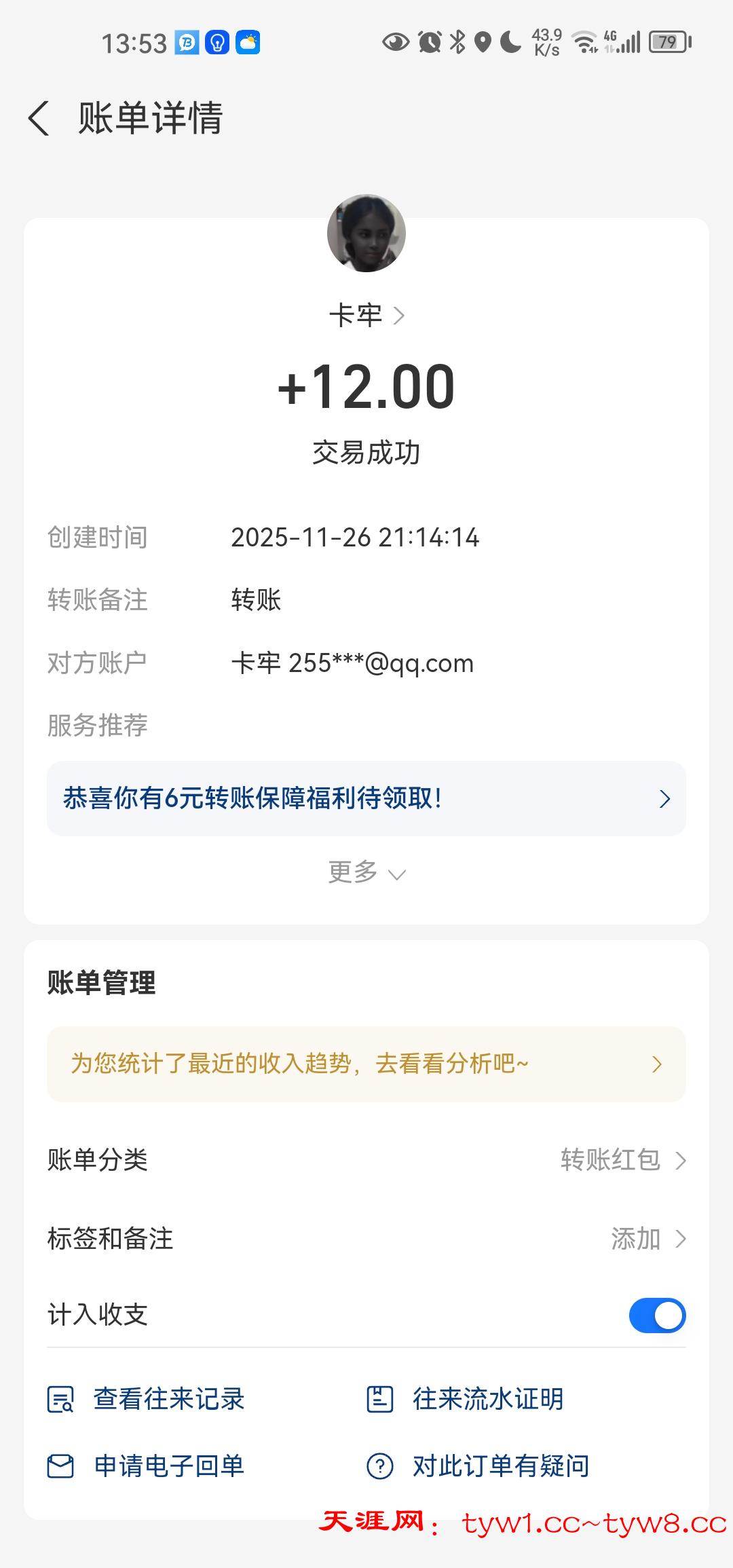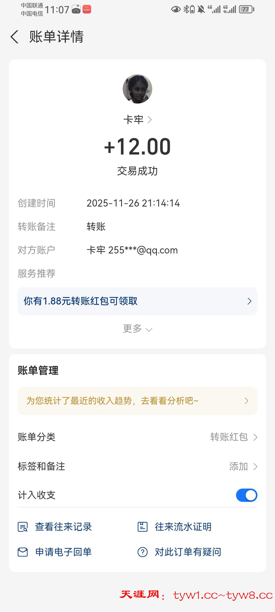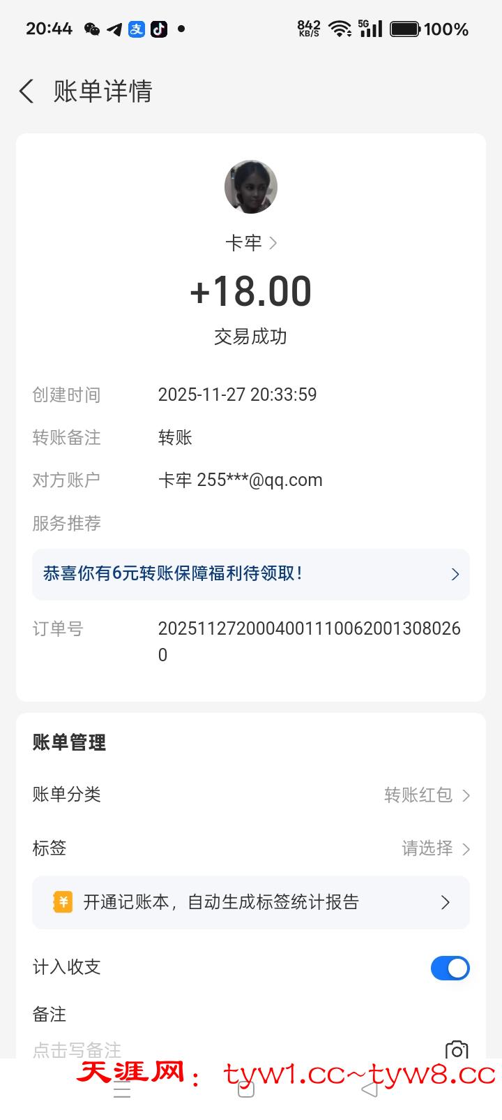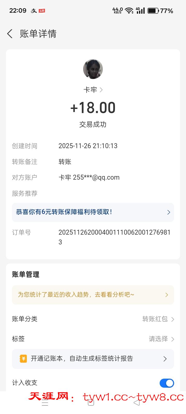 抽奖到账感谢天涯社区