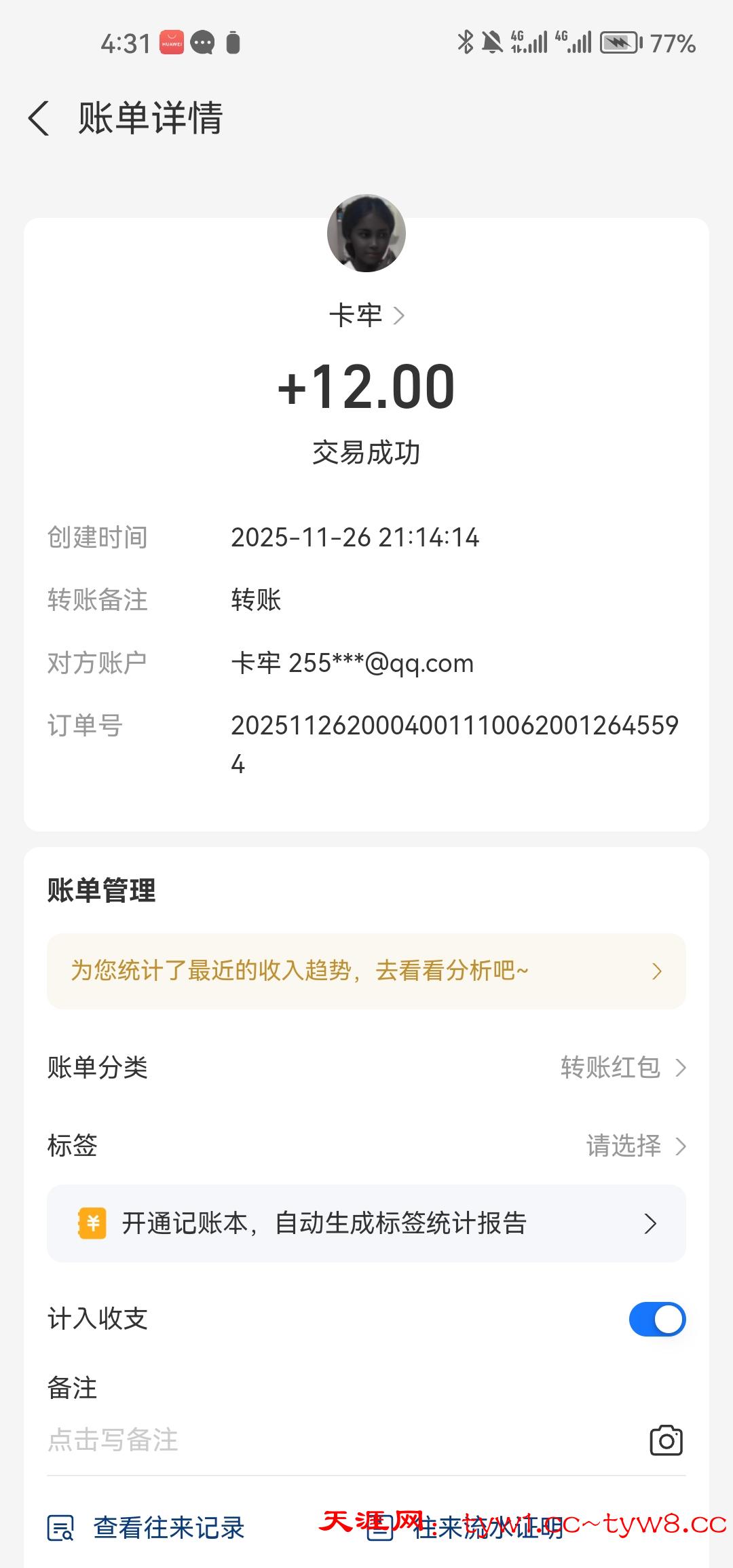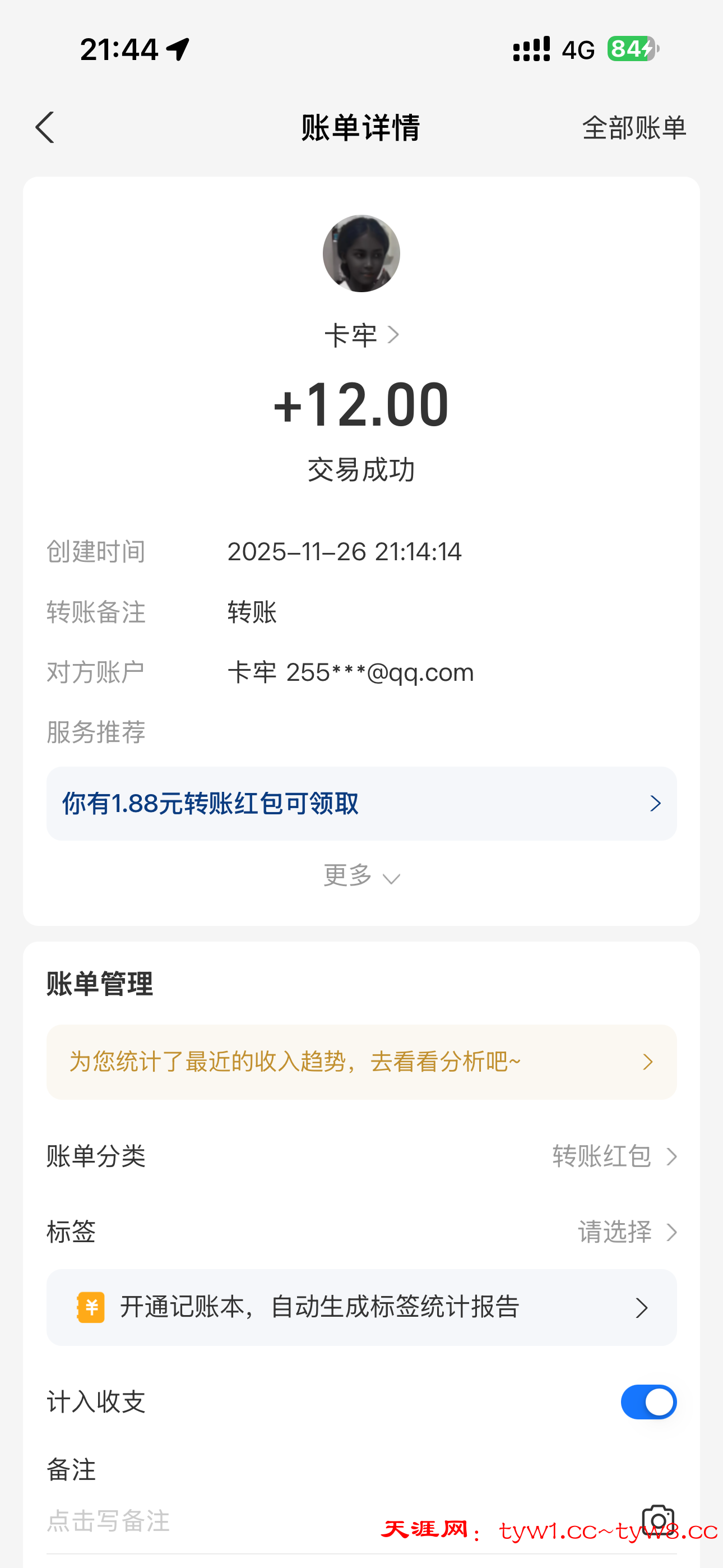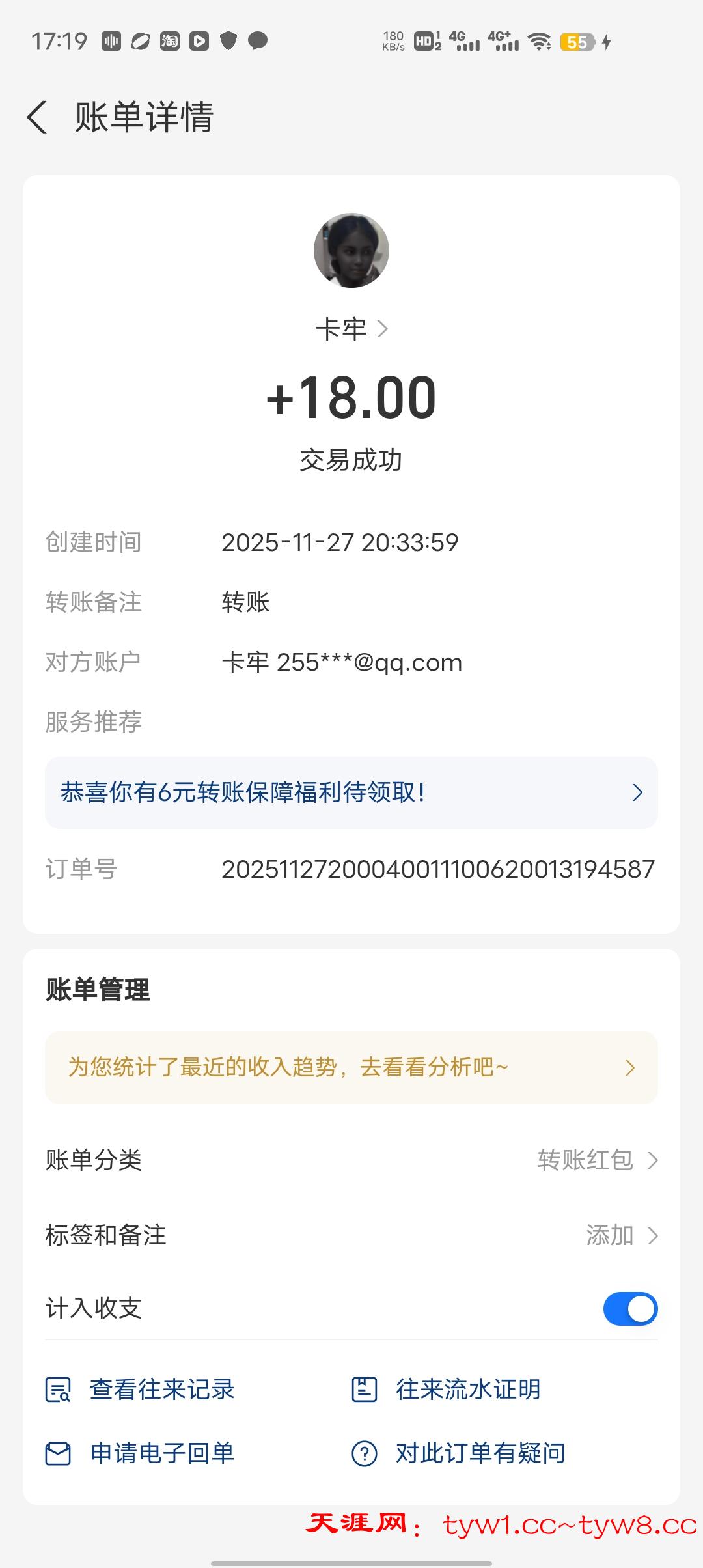 抽奖到账感谢天涯社区