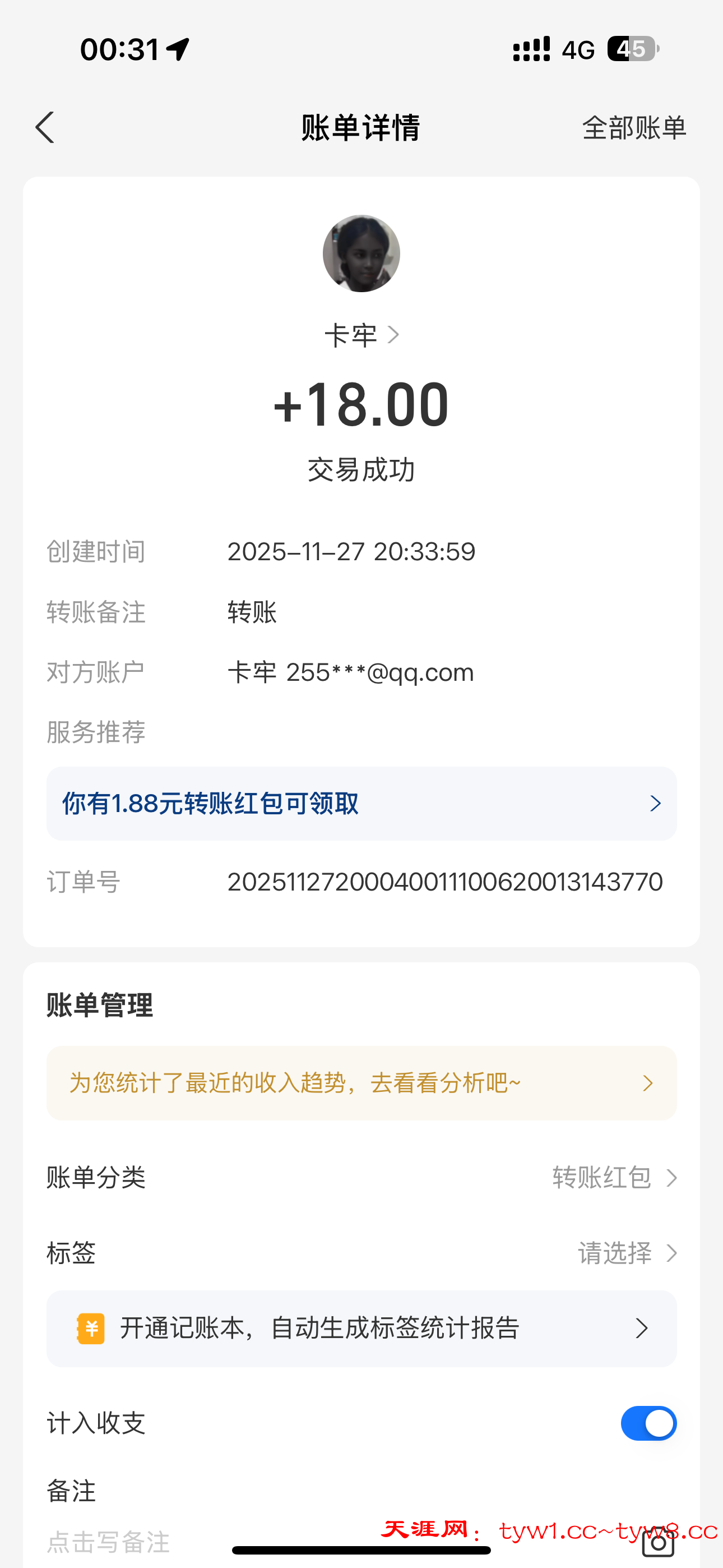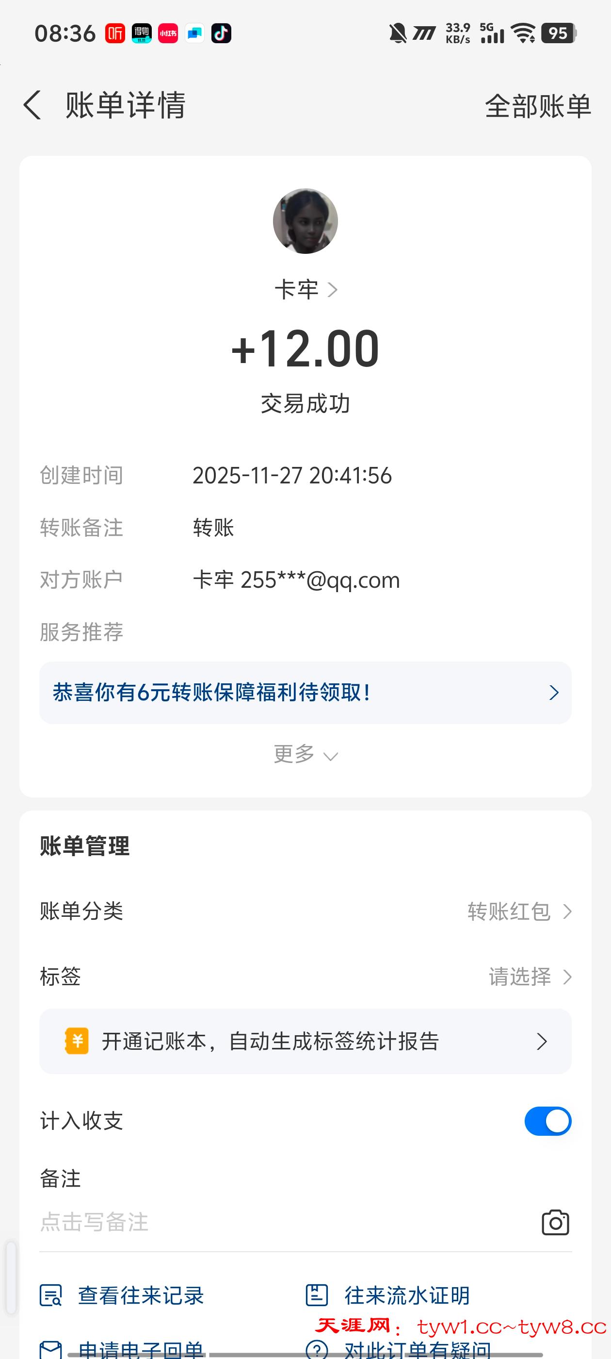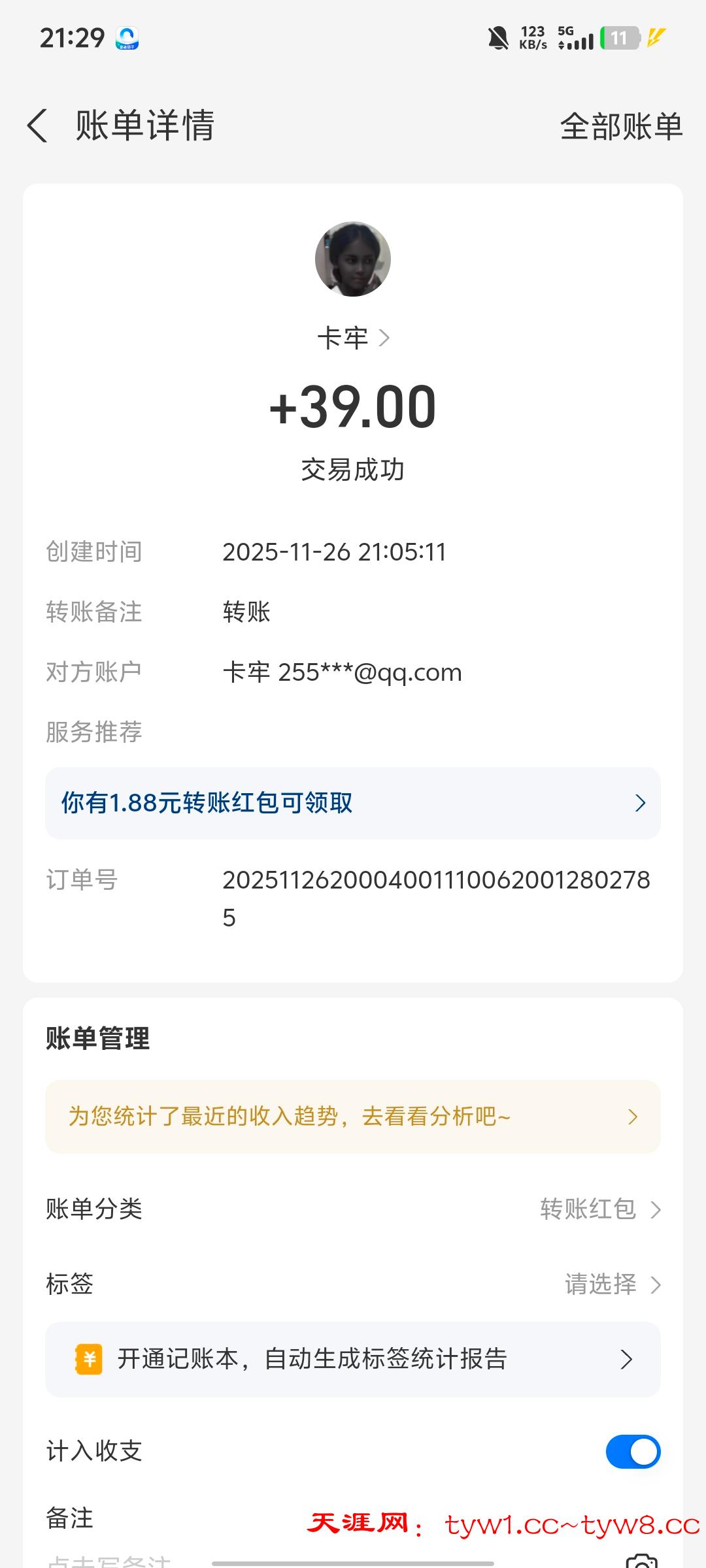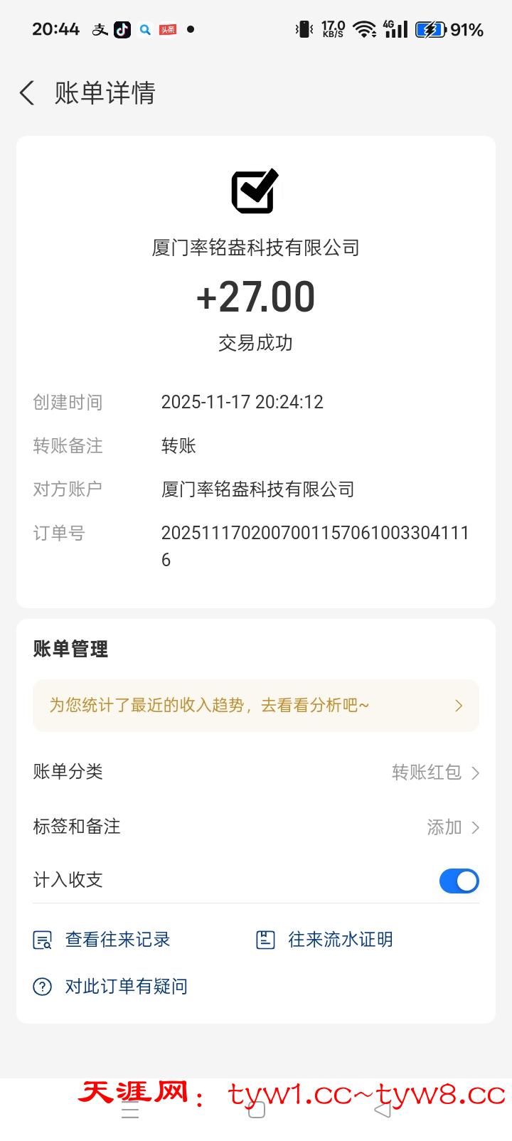 抽奖到账感谢天涯社区