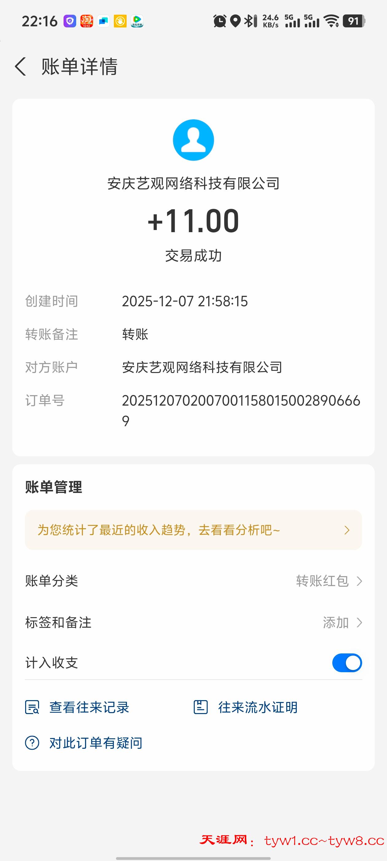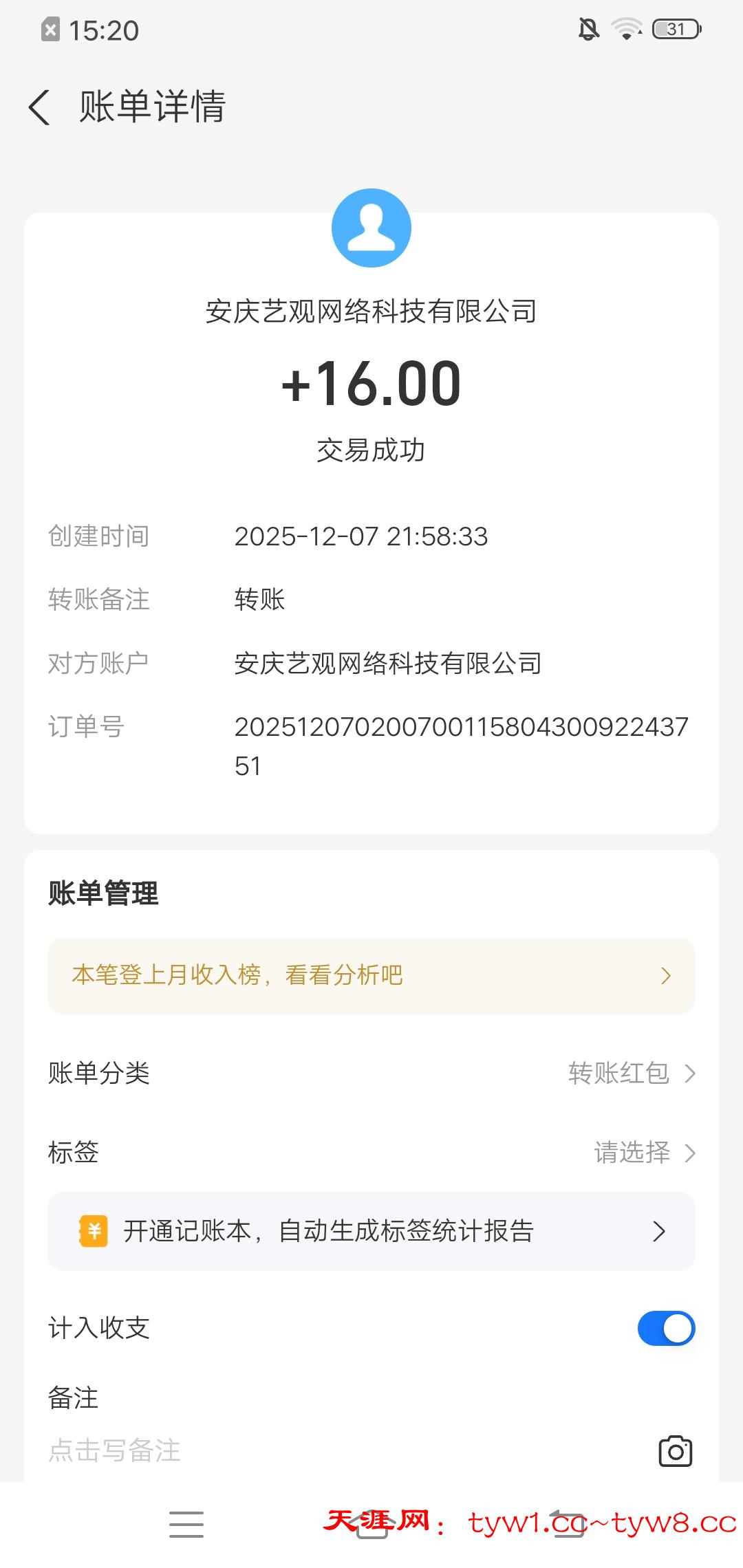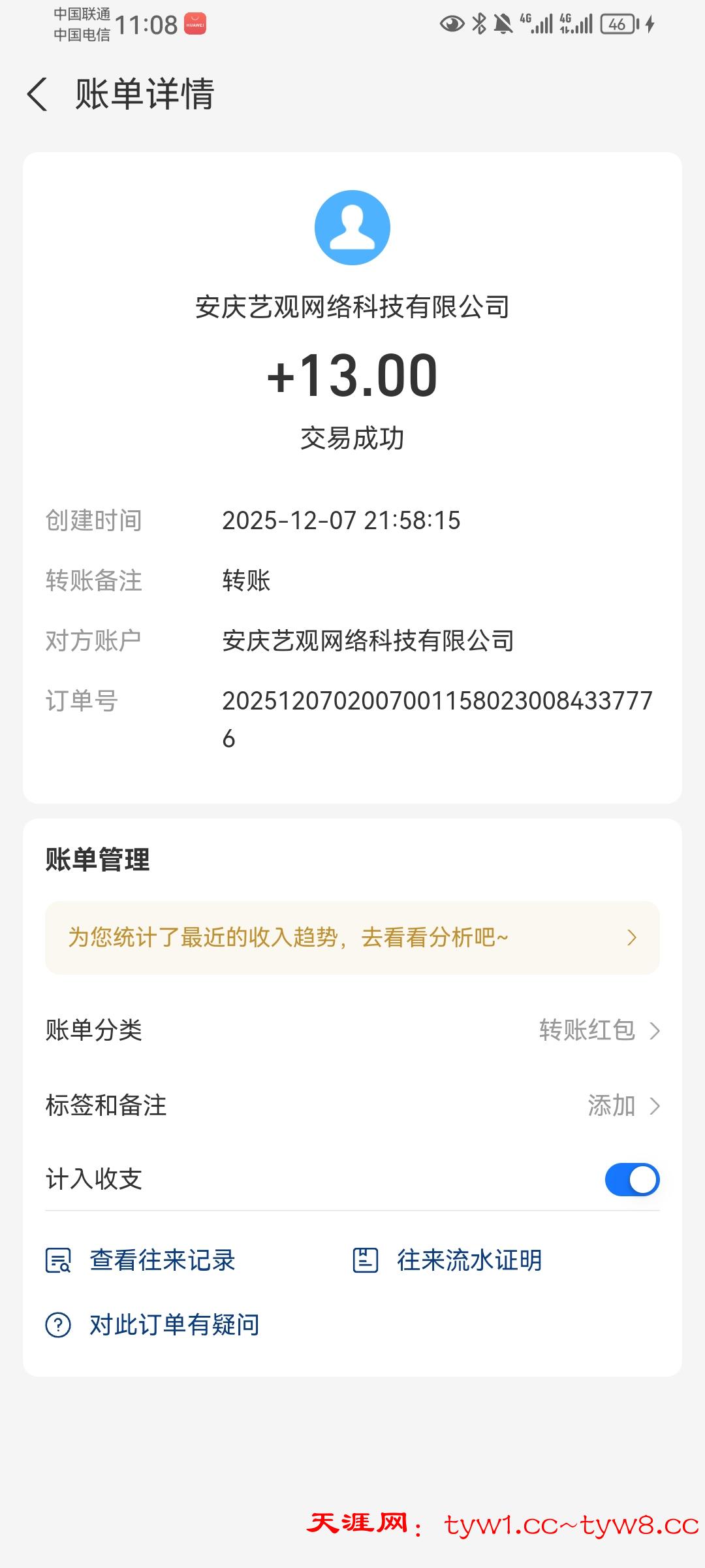 收到了感谢天涯社区