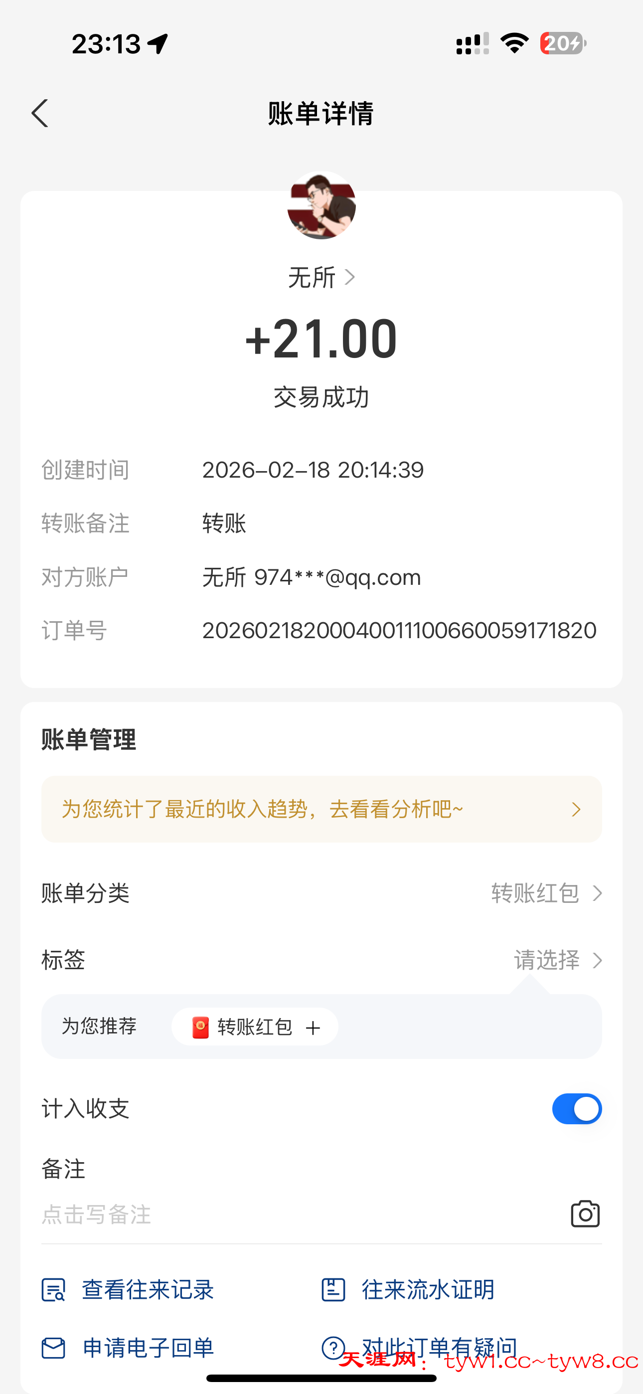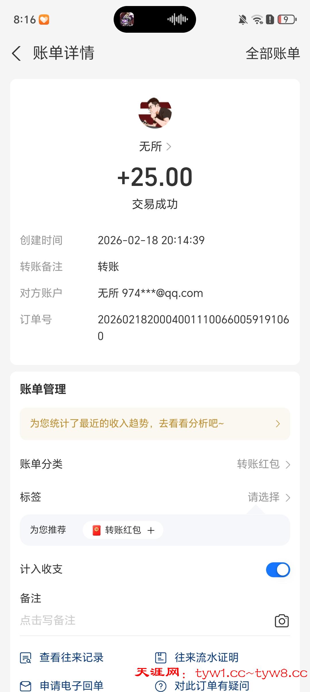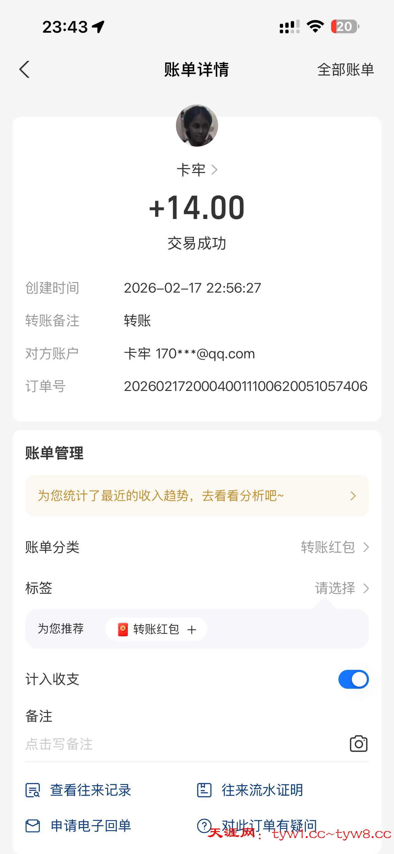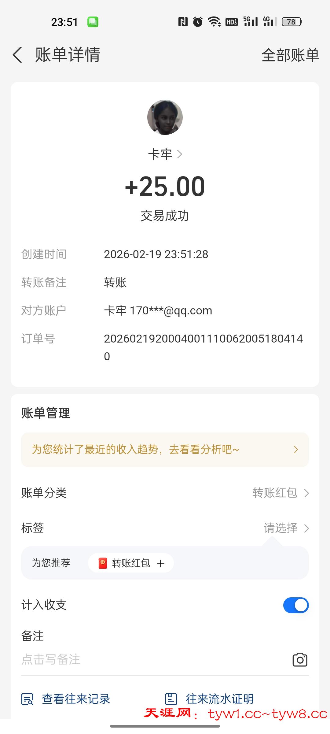 收到了感谢天涯社区