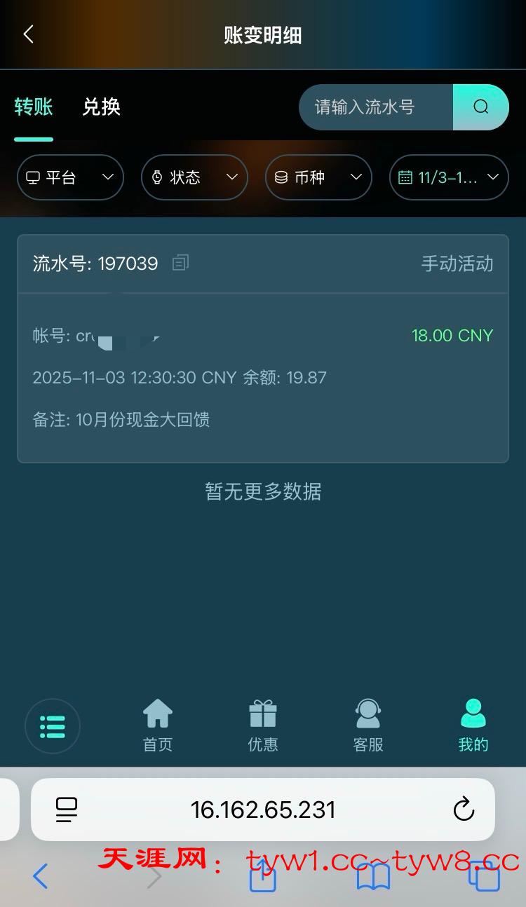 幻影收到10月份现金回馈彩金,有号的去看看。