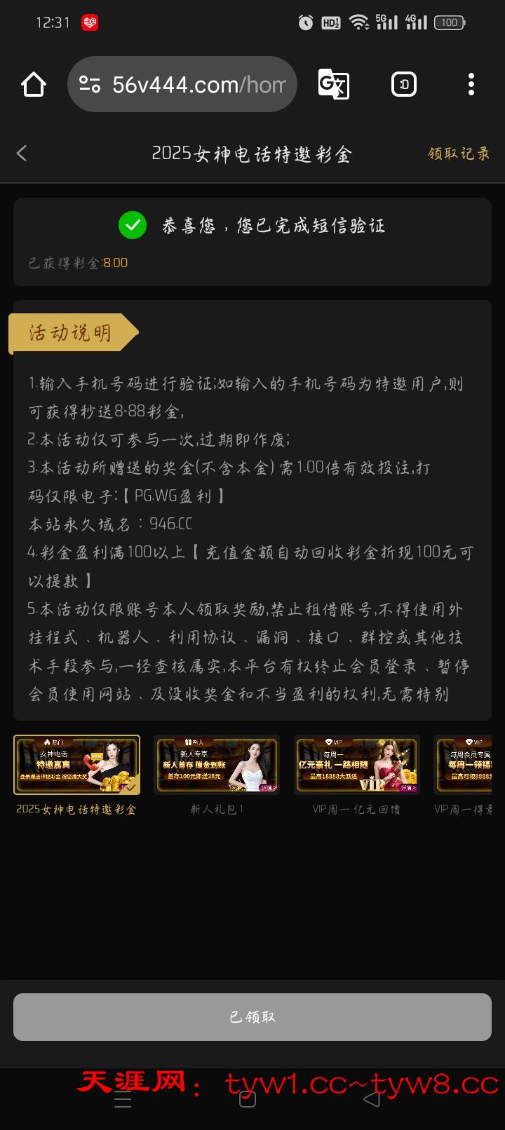 电话特邀你们自己碰一下吧我领到了8,有号的好像也有神秘彩金自己去看一下