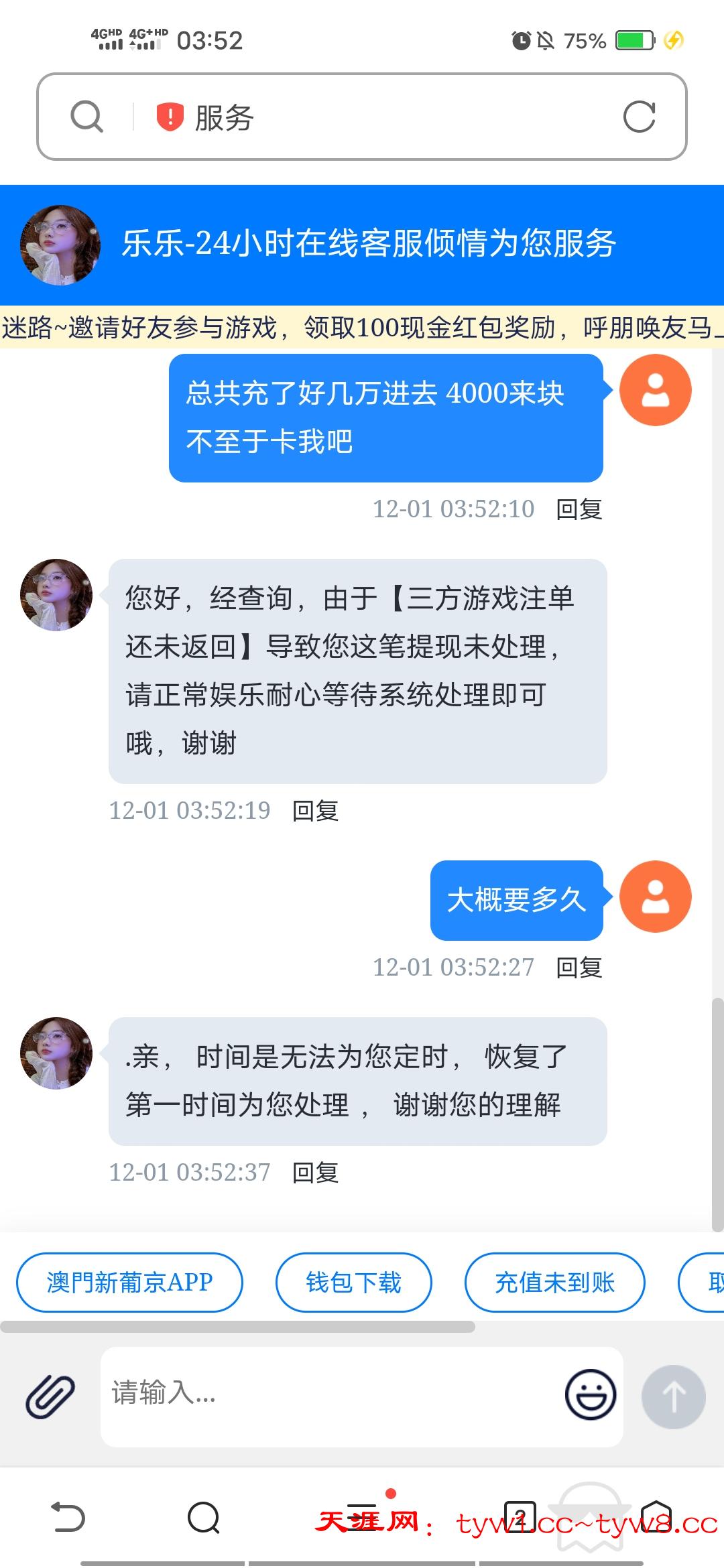 逢赌必输的老废物 国庆节期间充值一百娱乐财神捕鱼赢530提现就是注单异常,打码十几倍都是注定异常,狗庄想不给你提现出款什么理由都可以,目前账号被冻结中