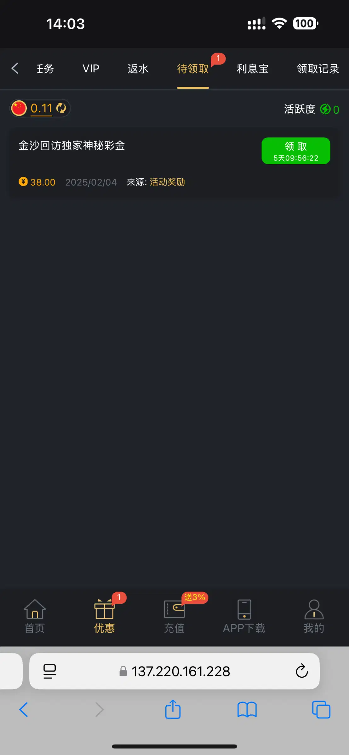 上接了电话不用找客服上号就有38 没充值过地址 9018.com