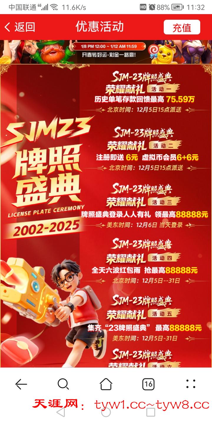 跟377一样的活动 充值过100 有6  6+6要存款5次 还有存款回馈 红包雨 网址7559.com 具体自己看活动