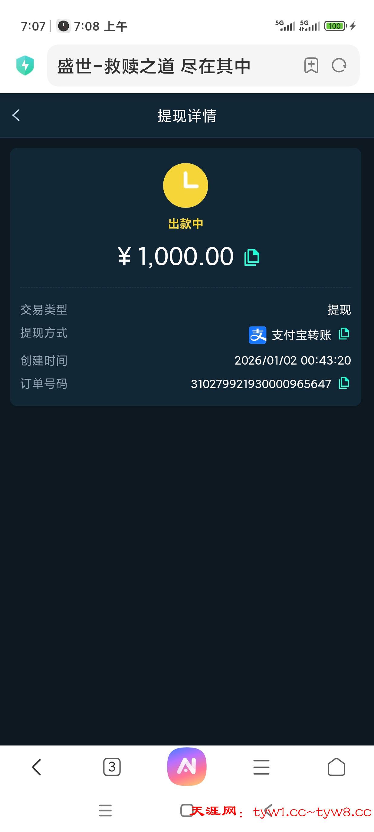 返现到账,天涯稳