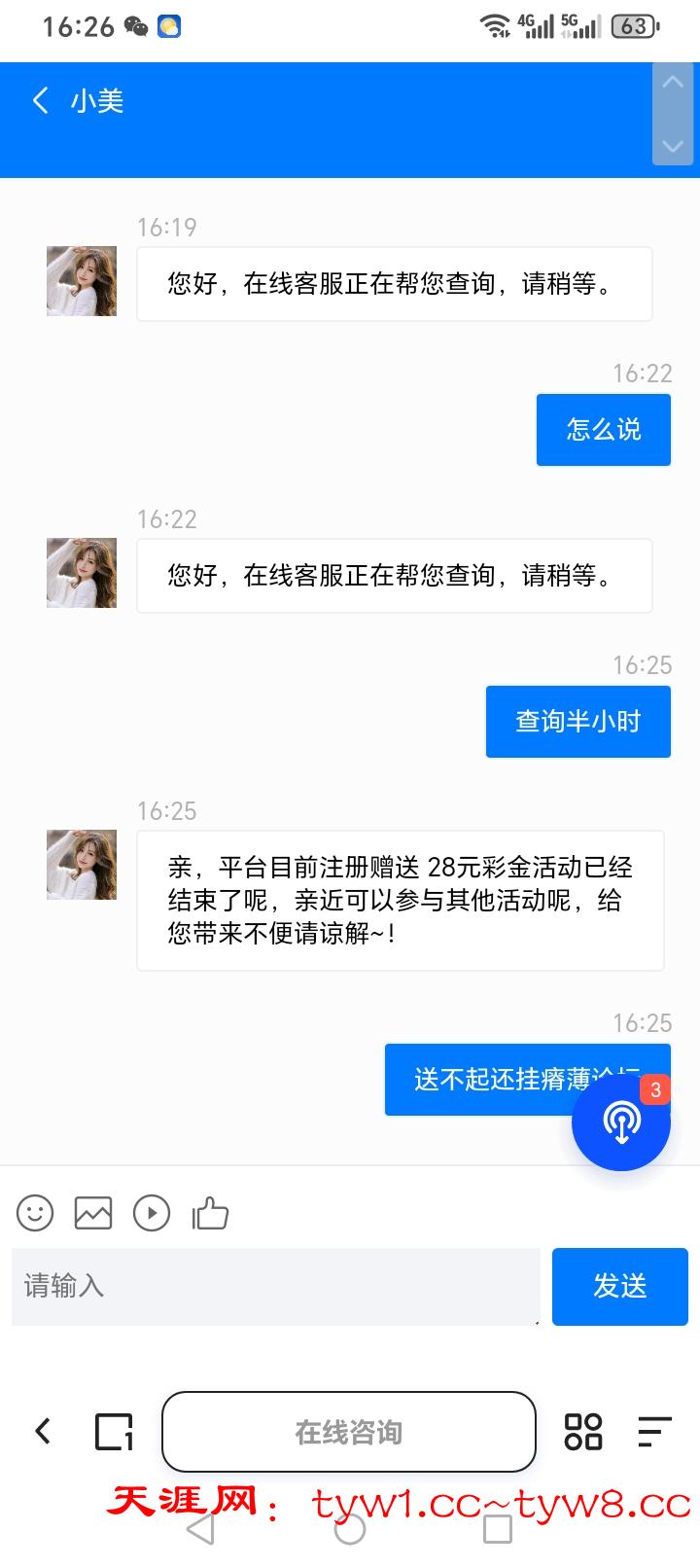 找客服申请查询半小时,没回