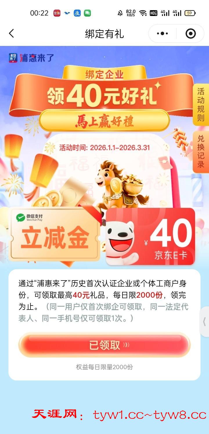 复制到微信发送出去打开 绑定自己的企业后退出去再重点一遍小程序界面选择 领取立减金,下载浦发银行开一个电子户绑到微信上 用开的时候绑的卡往电子户充值0.01,小程序搜索闪动充值40.01实付0.01再提现秒到
