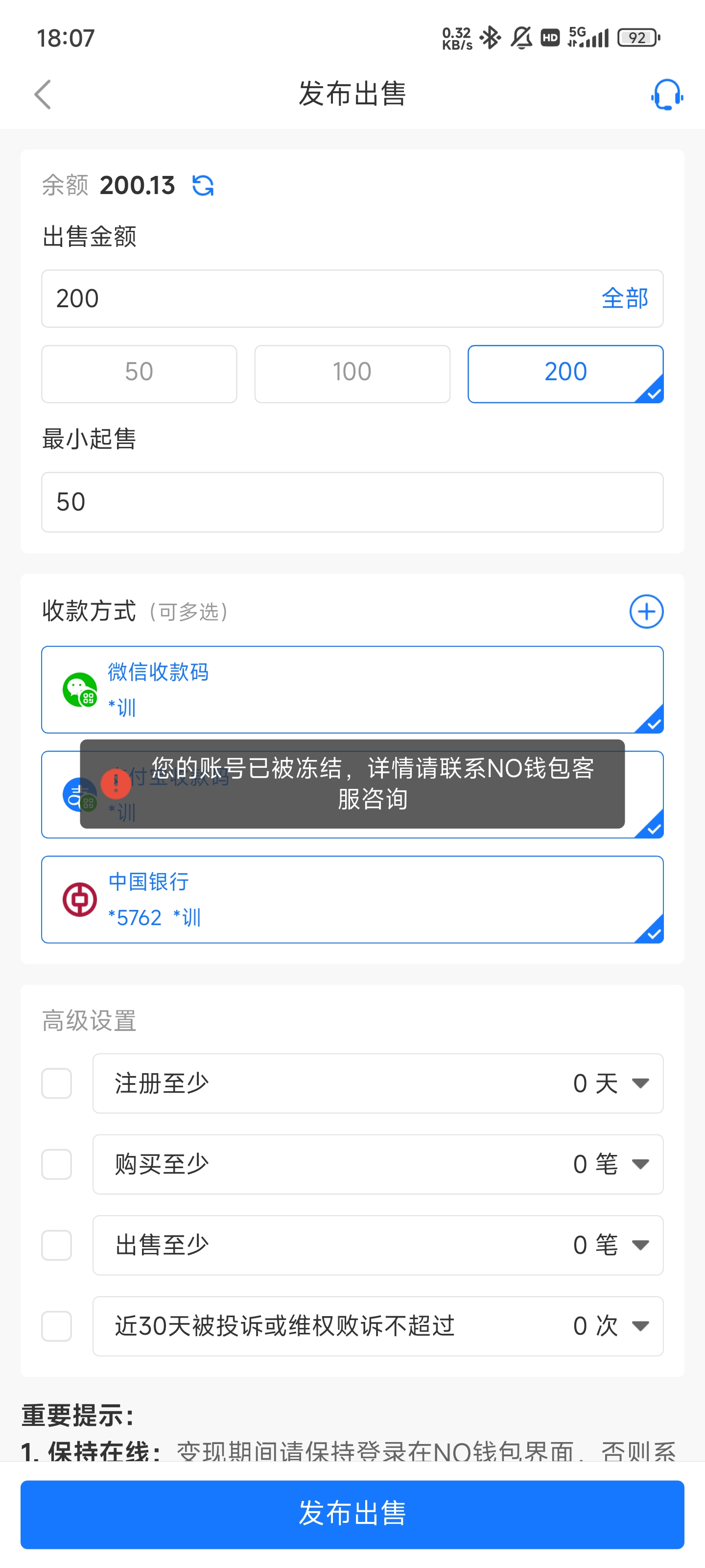 什么原因也没说,就是用了一段时间突然把你账号冻结了然后让你提供手机号银行卡,交易记录身份证正反手持写字条,录个材料全套加聊天记录屏。真特么恶心