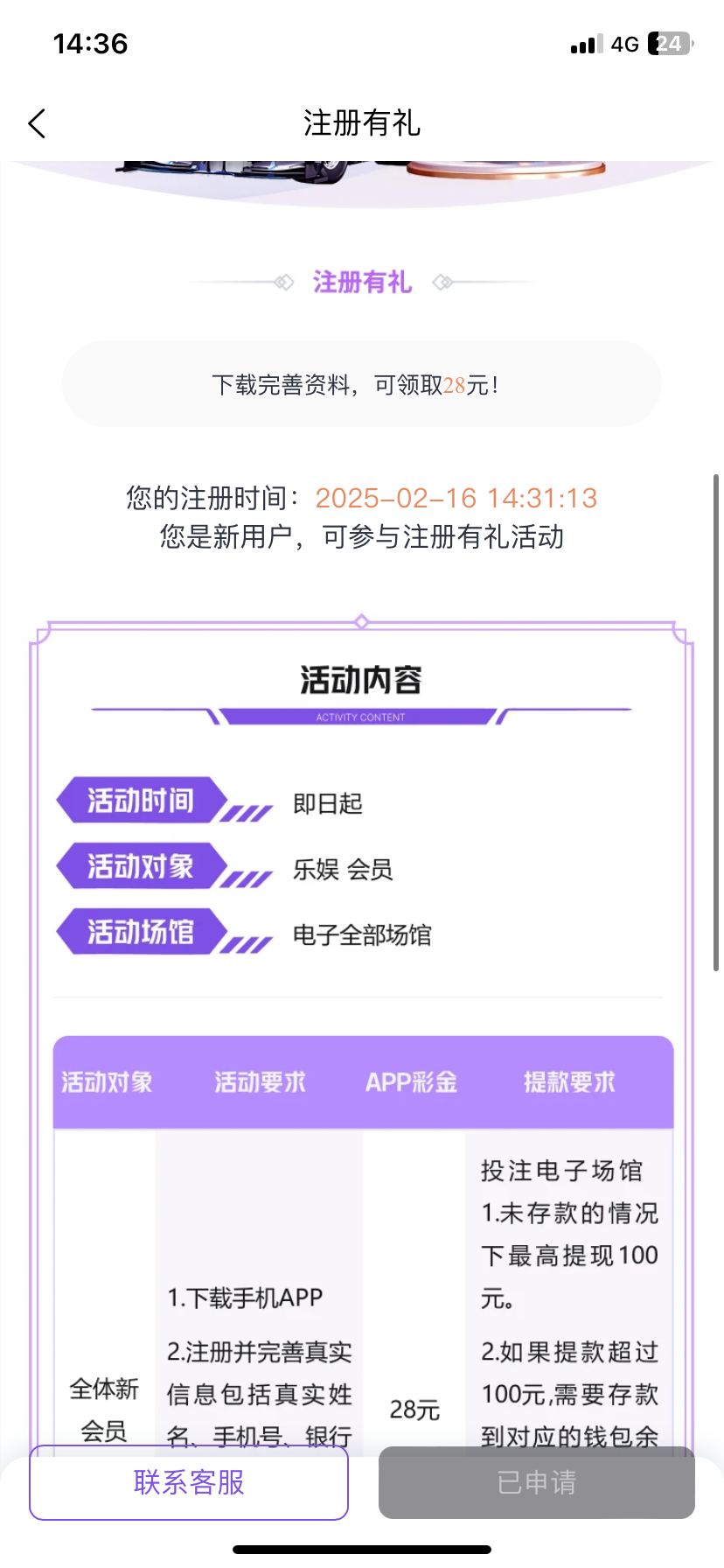 注册完善信息送28,申请成功要24小时审核
