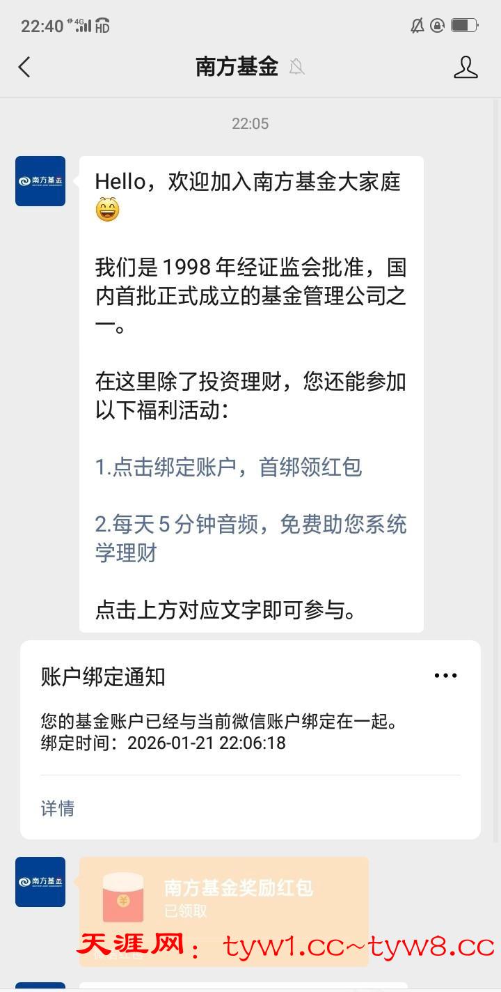 微信搜索南方基金公众号关注,点击绑定账户,首绑领红包,人脸登录,人人4元,没有基金账户也可以绑定