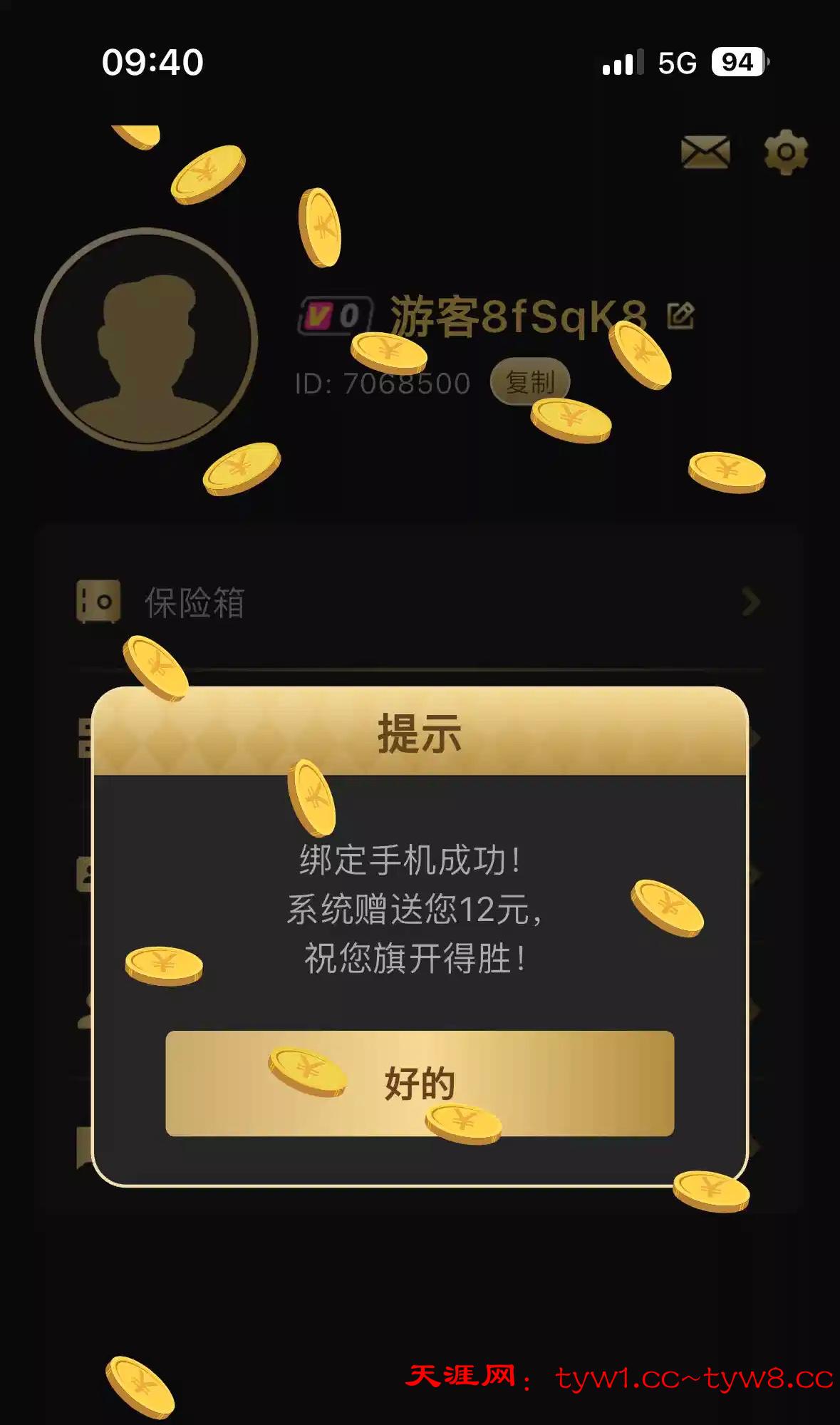 接到电话下载app,进去点我的,右上角绑手机秒12,另一个手机号绑手机也秒了,贪了100没跑,不知道黑不黑,白嫖勿充值 网址354437.cc