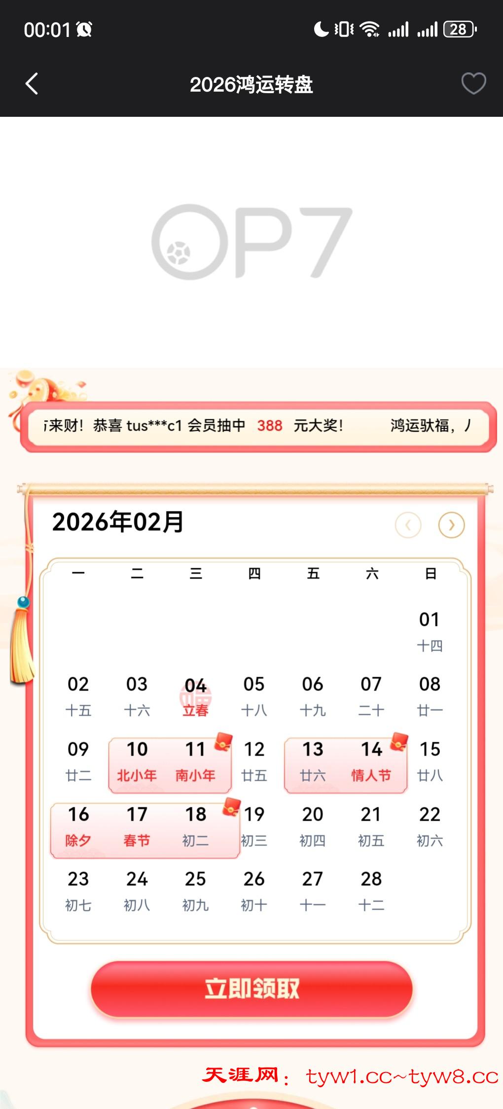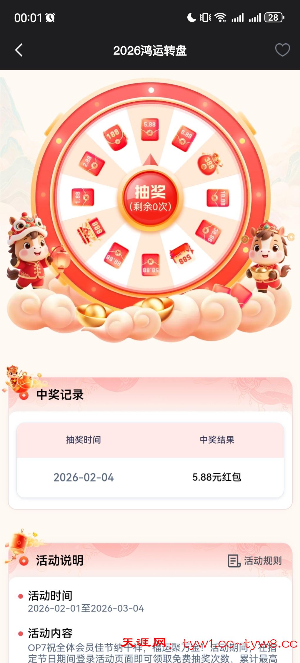 https://www.sx833.com/,op7平台(原易倍),有号的去领,活动期间可以领取五次,最高抽到888,我只抽到5.88。在优惠特殊里2026鸿运转盘