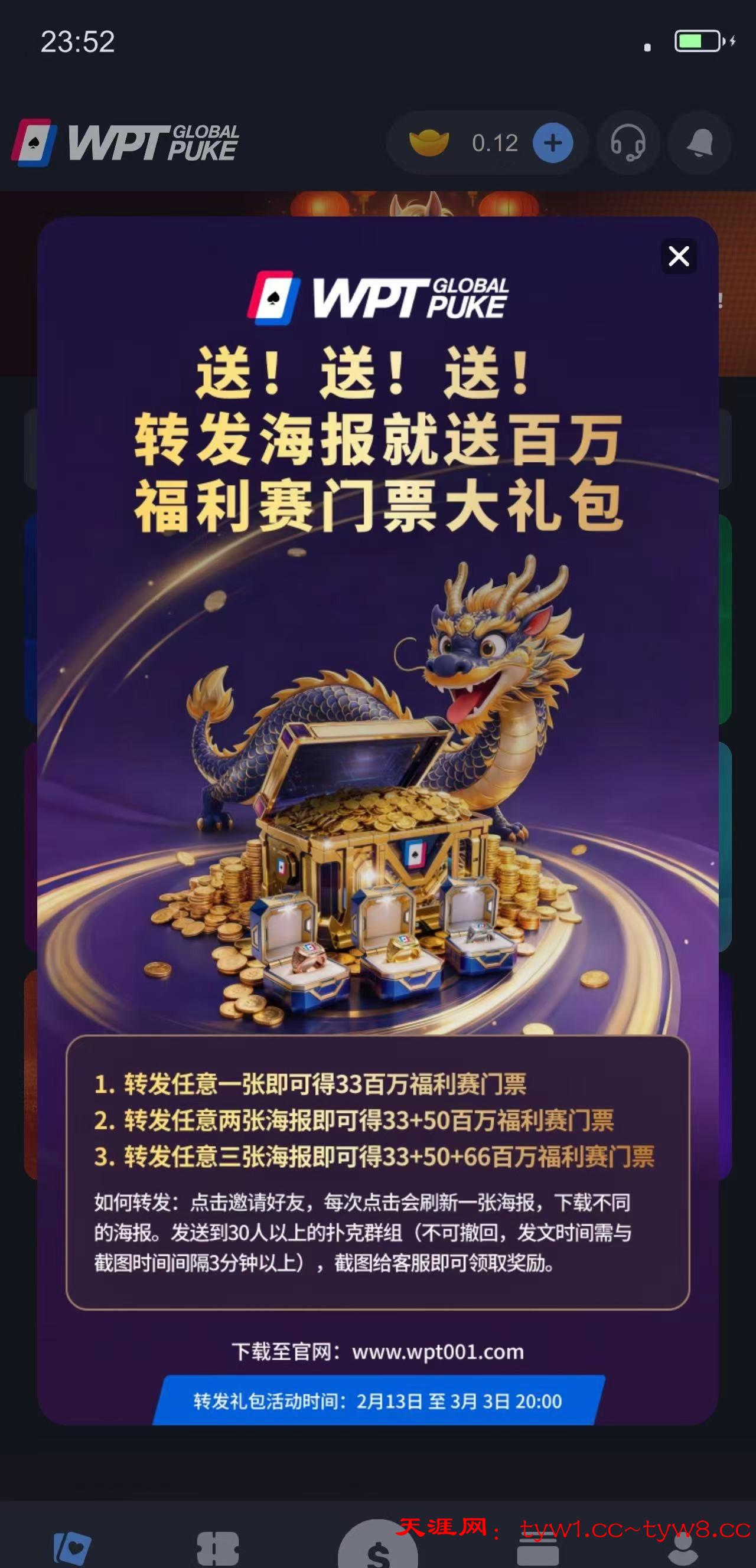 【wpt转发海报得门票活动】