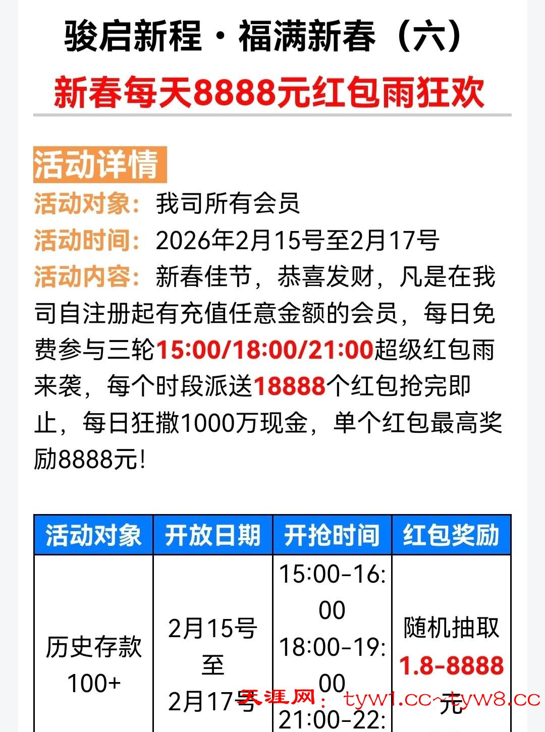 活动要求历史存款100元 每天三波红包雨15.00 18.00 21.00