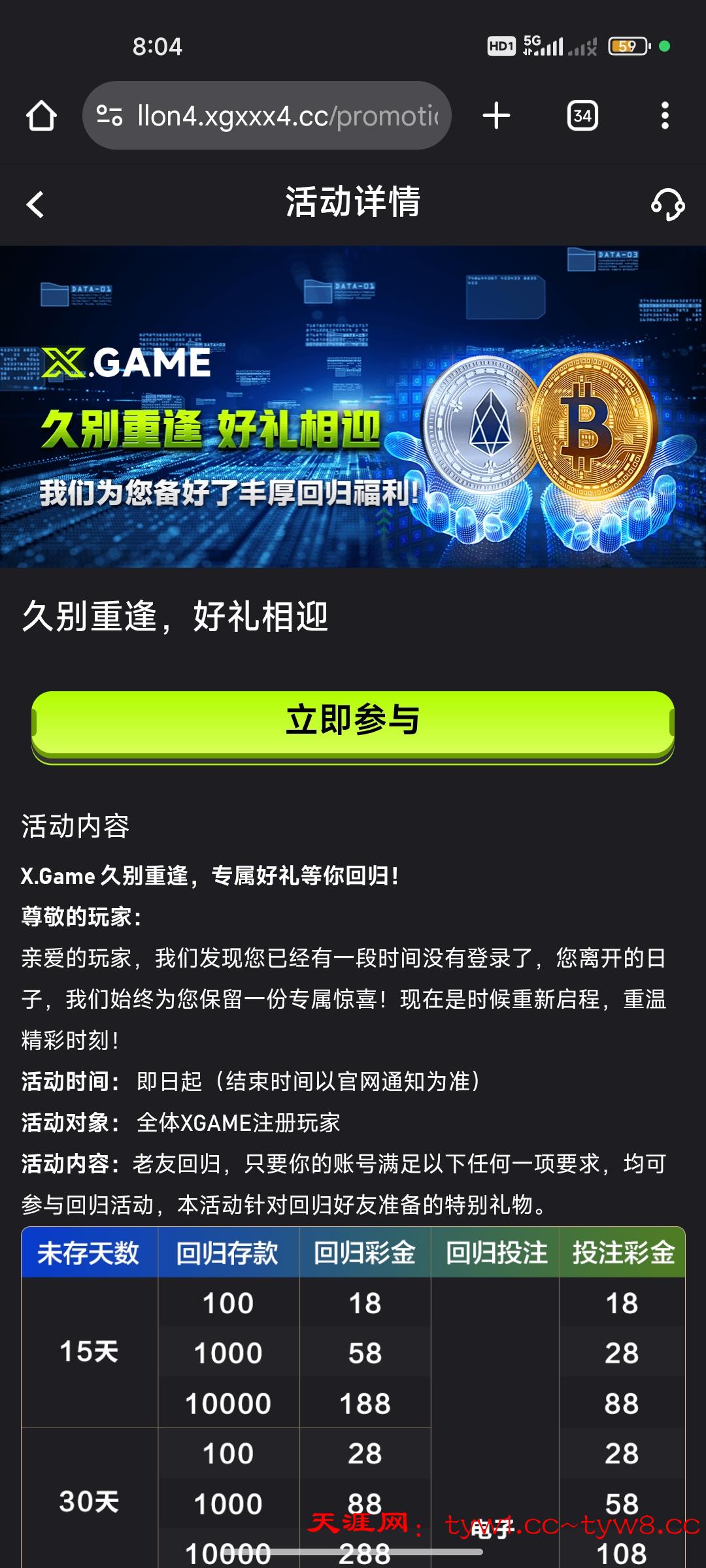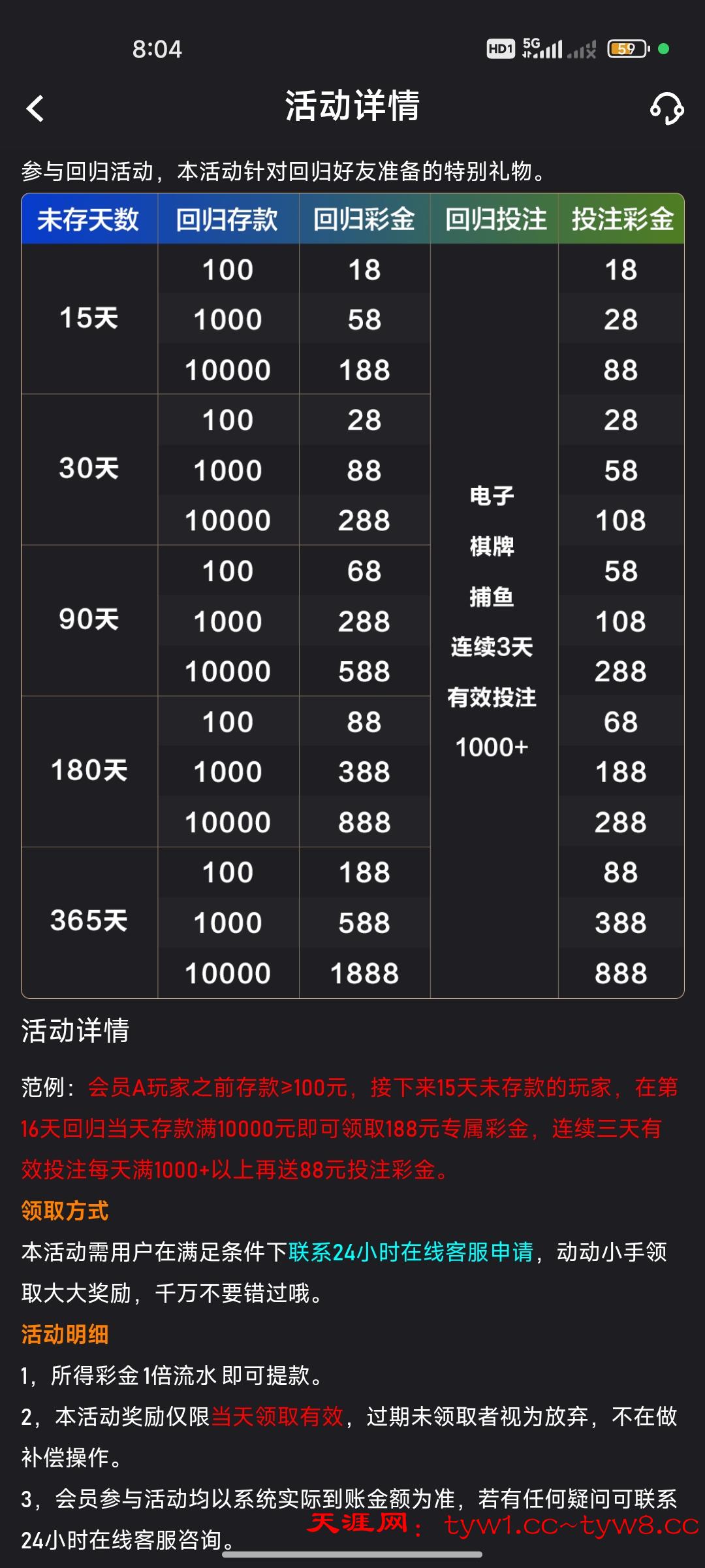 长期未登录过的来领久别重逢彩金,我超过180天没登录,回归冲了100给我送了88,一倍流水