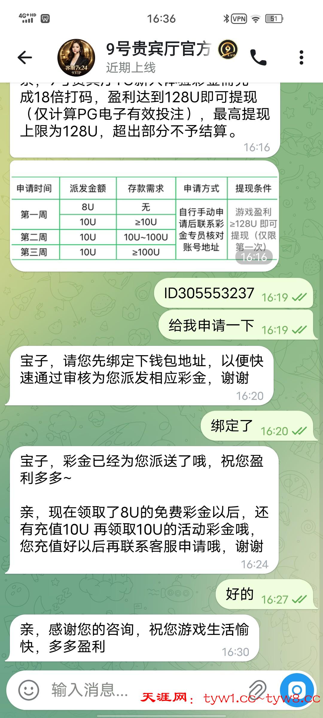 进去飞机群,点注册送38然后飞机找客服。我送了8u不是特邀,送8u要128u才可以提现,我没有出最高上85u。不嫌麻烦的可以试试。飞机群链接 https://t.me/dny8697