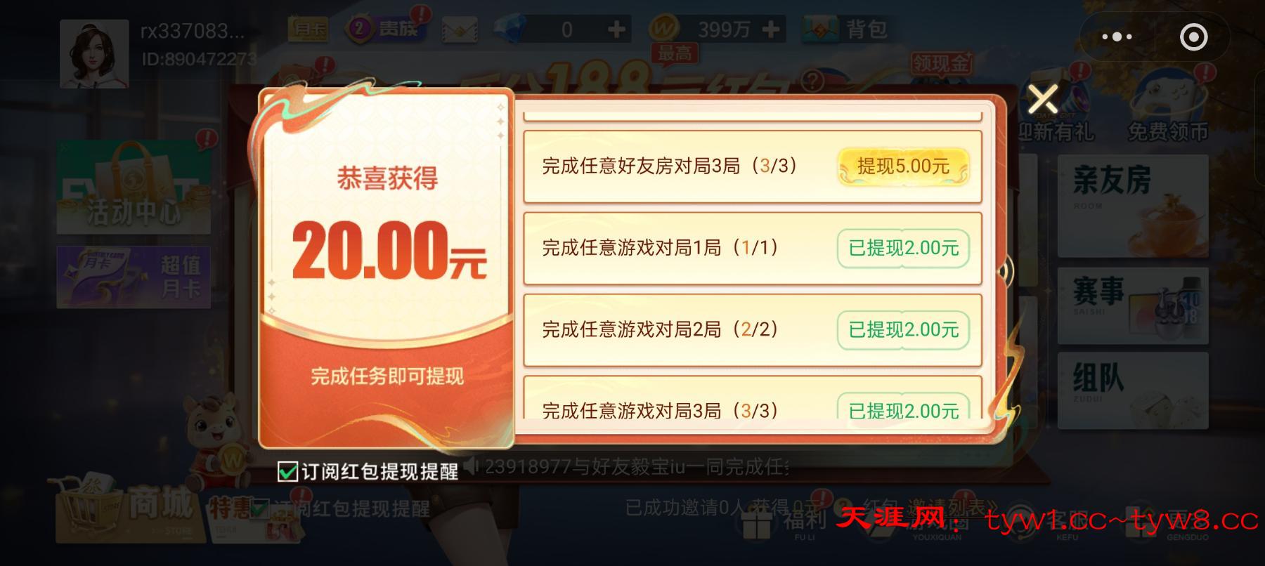 好友邀请才有红包,没有好友的复制我的链接最多只能5个领,大小号换着邀请,好友房就是随便建房间邀请一个好友打就可以。