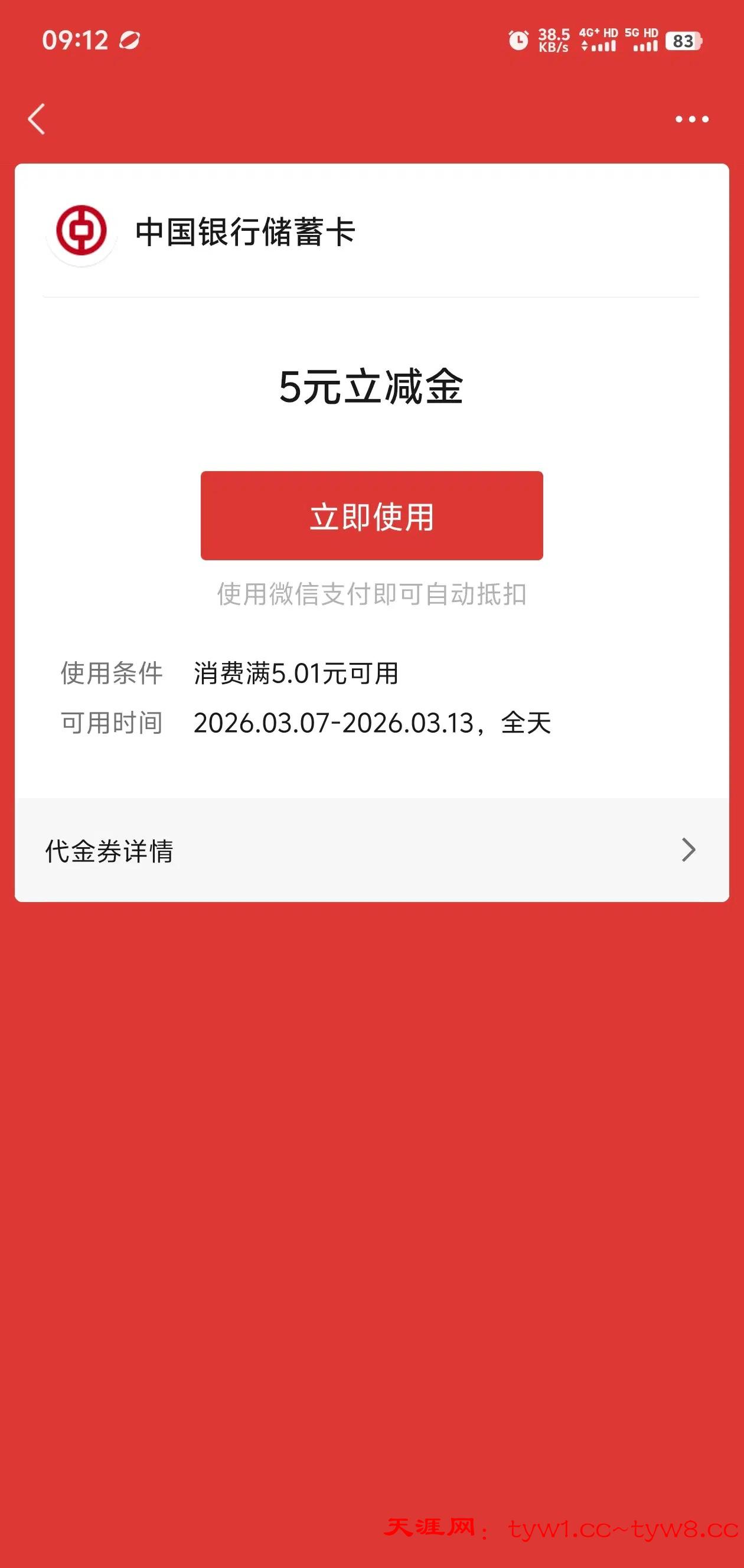 【中国银行白嫖5块立减金】