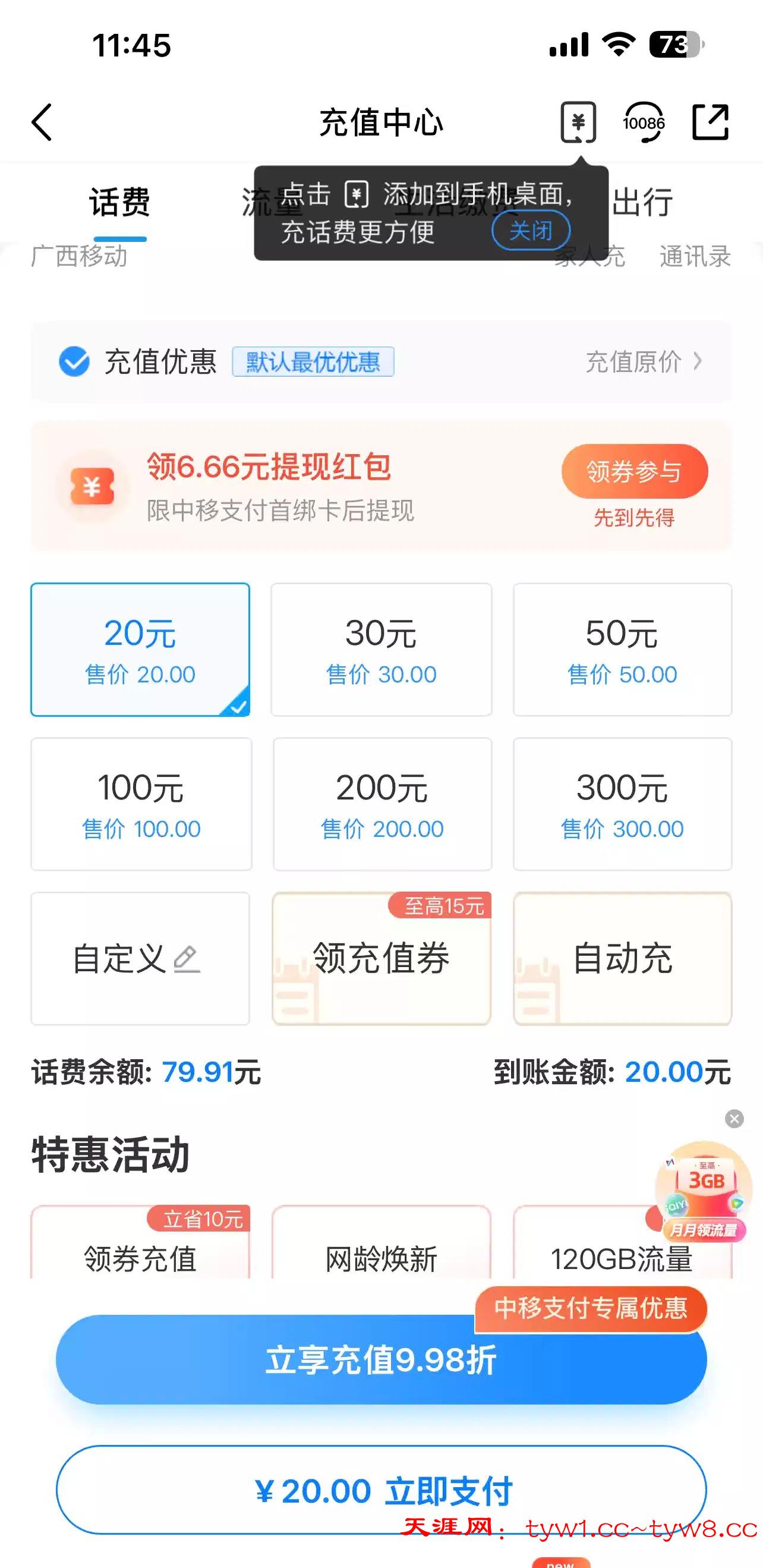 【中国移动APP领取6.66秒到账】
