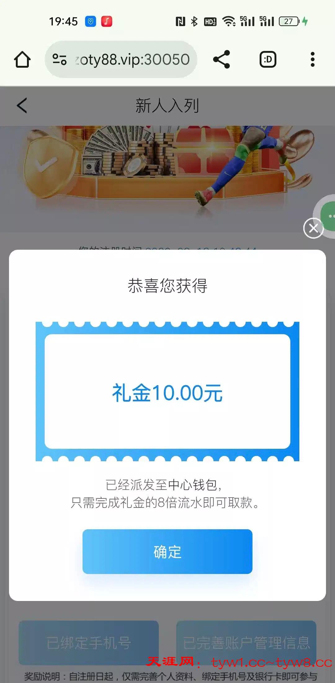 注册绑定手机号银行卡活动里面自助领人多易黄在劫持网站里进去的。