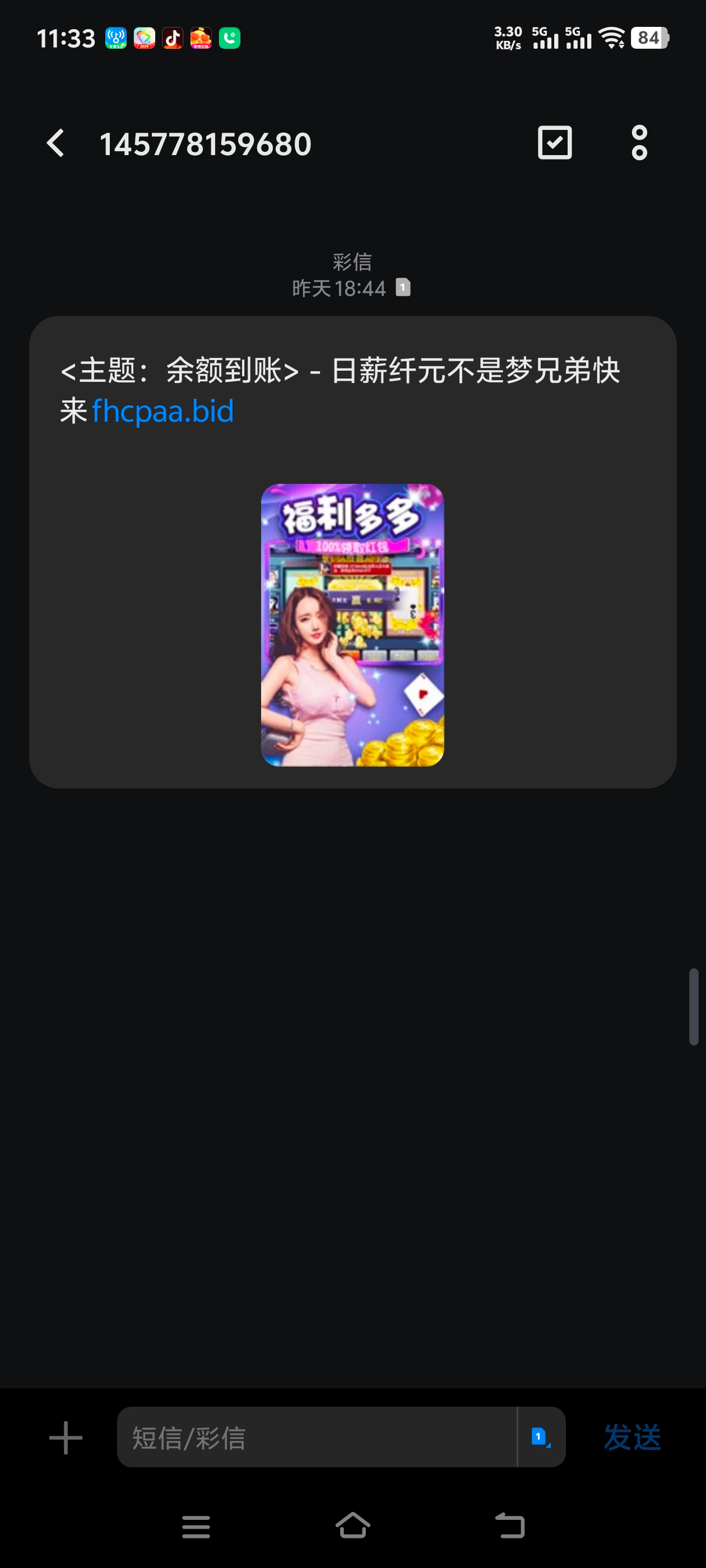 网址在短信图上,提供手机号去碰,没碰到的嘴下留情勿喷