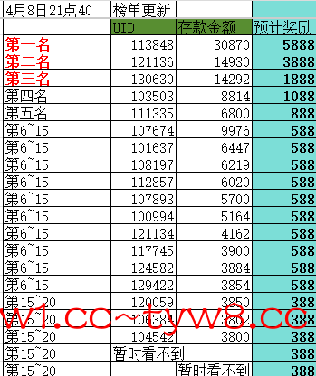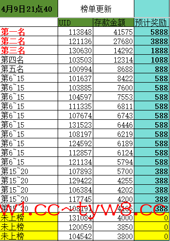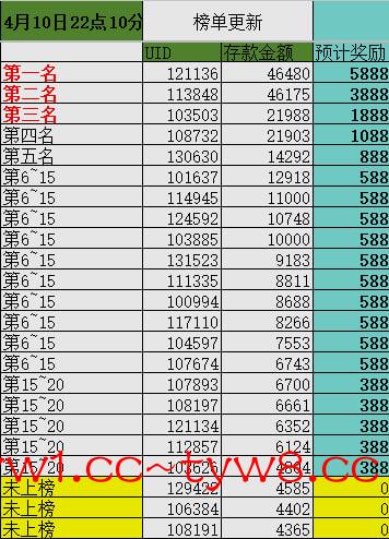 榜单敲定4月15日23:00