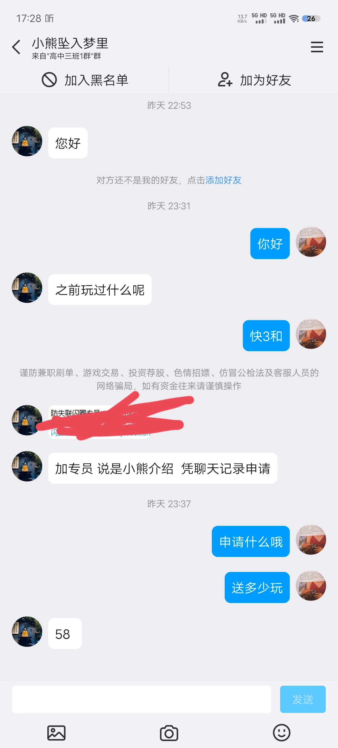 加qq群说收到短信来的,进去就会有人联系你了送58